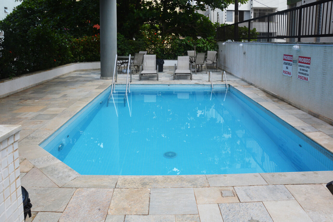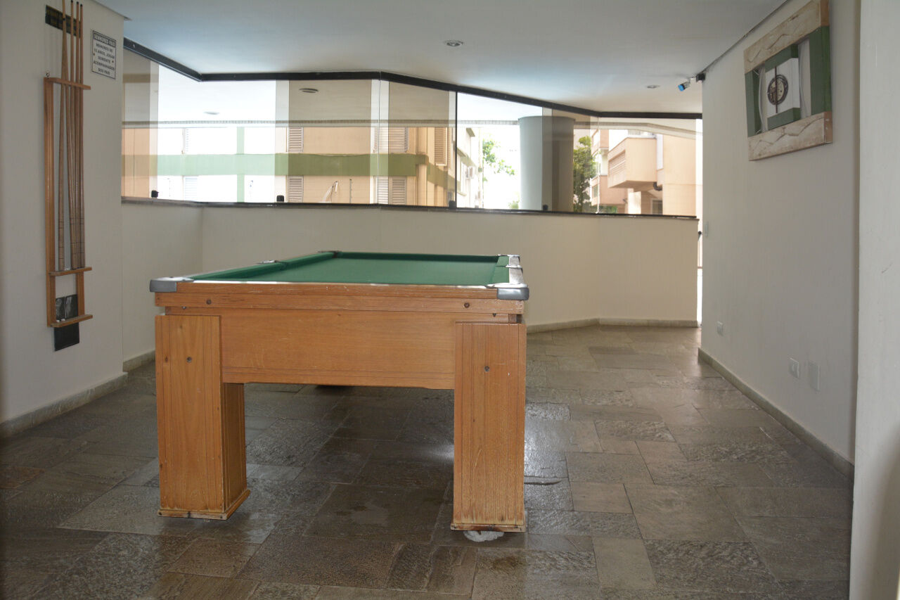 Lazer com piscina, salão de jogos, serviço de praia e portaria 24 horas.