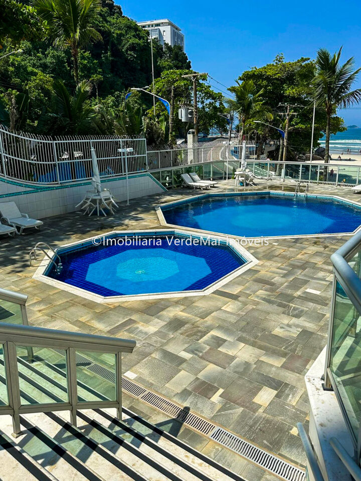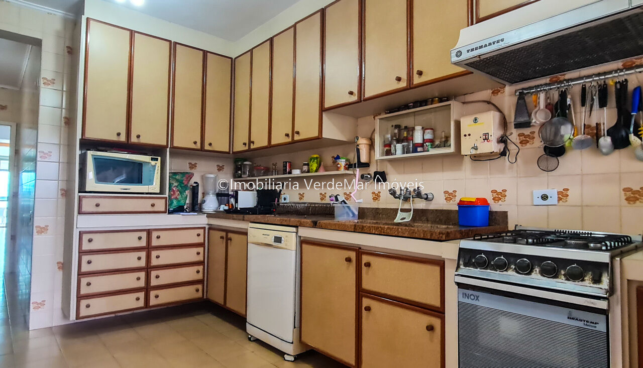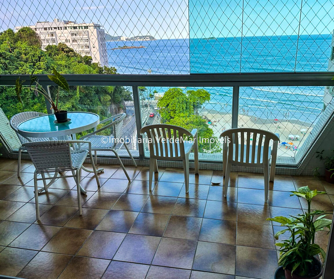 Apartamento à venda na Praia das Astúrias em Guarujá, frente mar, com 03 dormitórios sendo 02 suítes, sala para 02 ambientes com sacada, cozinha planejada, lavanderia e dependência de empregados com banheiro.