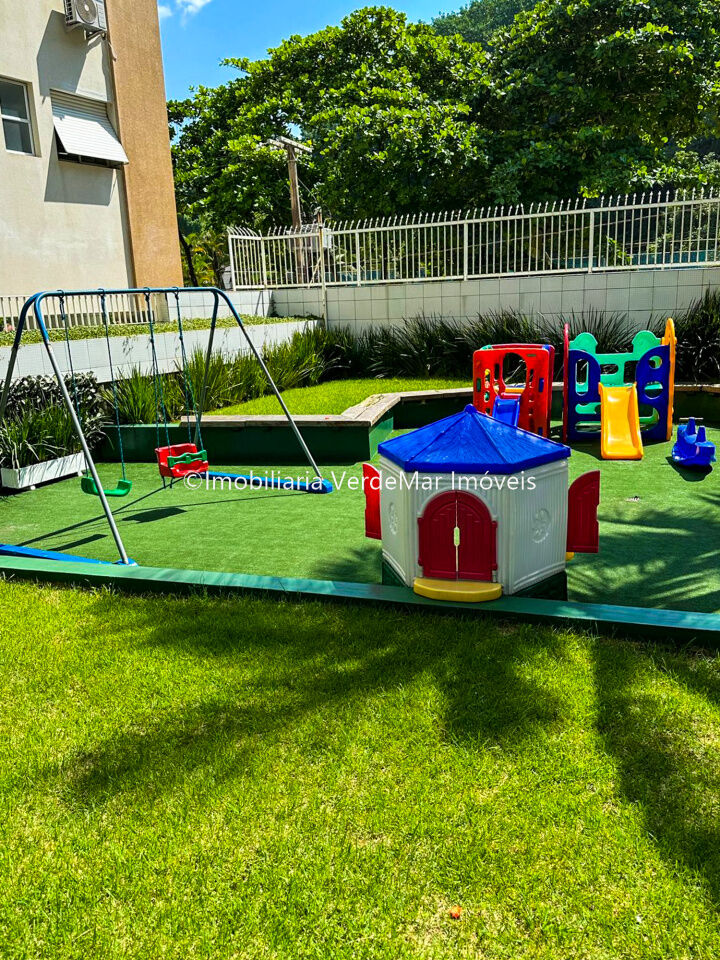Lazer do prédio com piscina adulto e infantil, salão de jogos, quiosque com churrasqueira e cozinha gourmet, playground, sauna e serviço de praia.