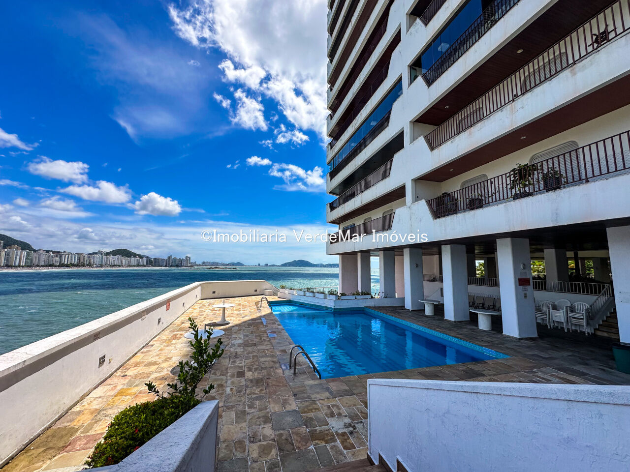 Prédio com acabamento em pintura texturizada, fachada com estilo mediterrâneo, ótimo padrão de construção e estado de conservação. Localização privilegiada de frente para o mar, dispõe de área de lazer com piscina de água doce e salgada, salão de jogos e festas, playground e academia. Portaria 24 horas, acesso via portões automatizados, aceita pet.