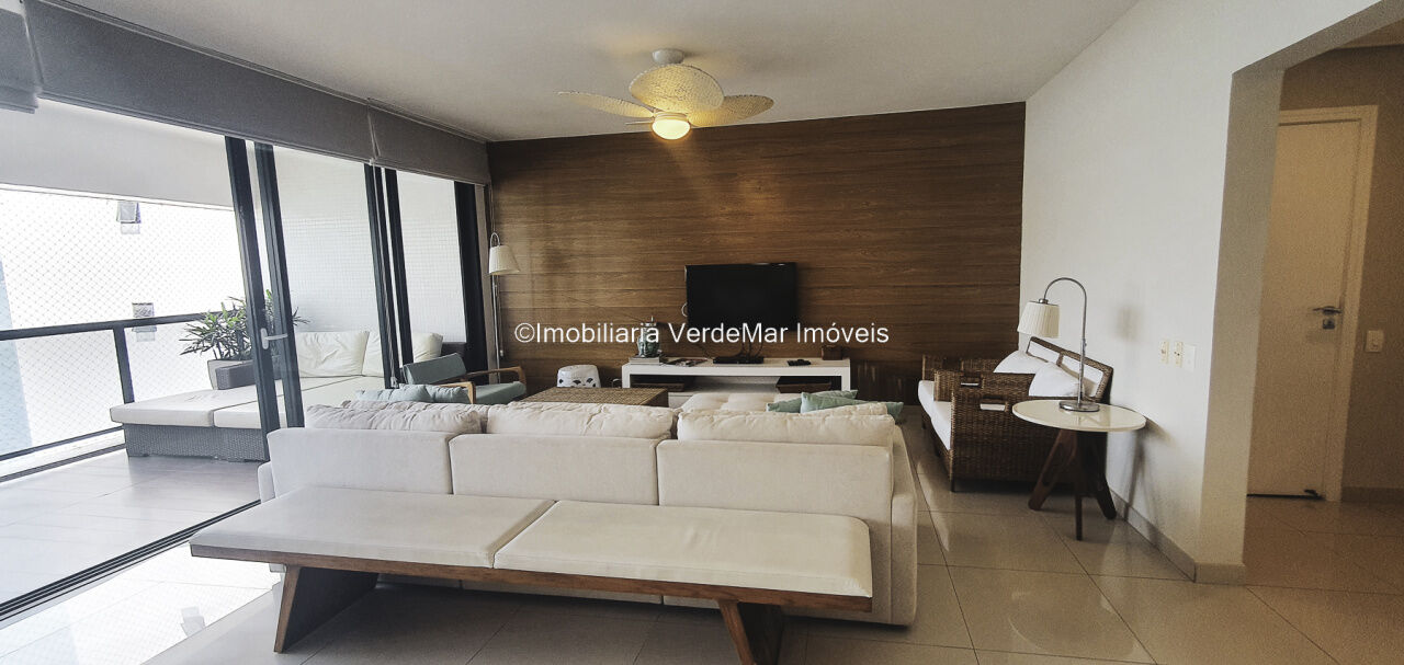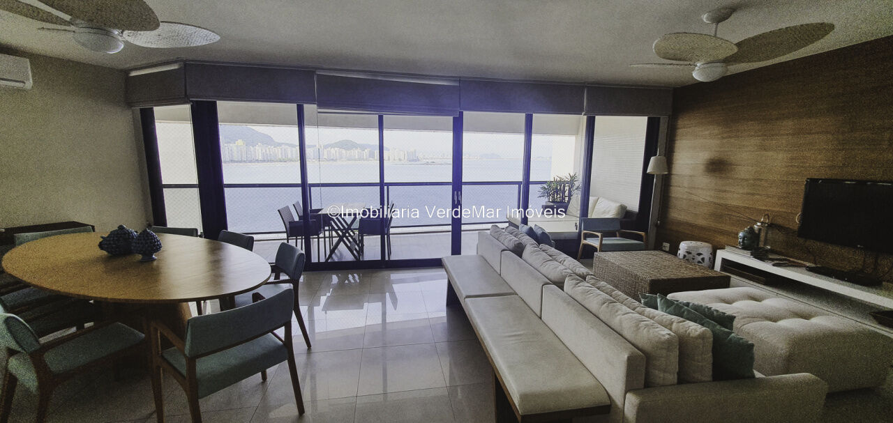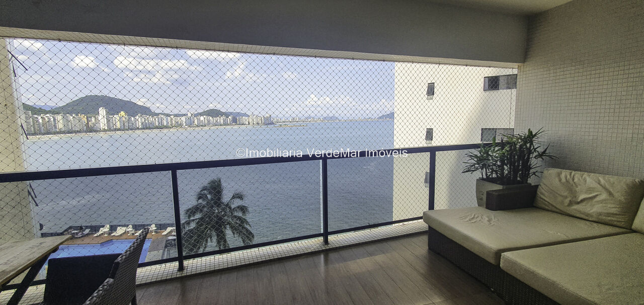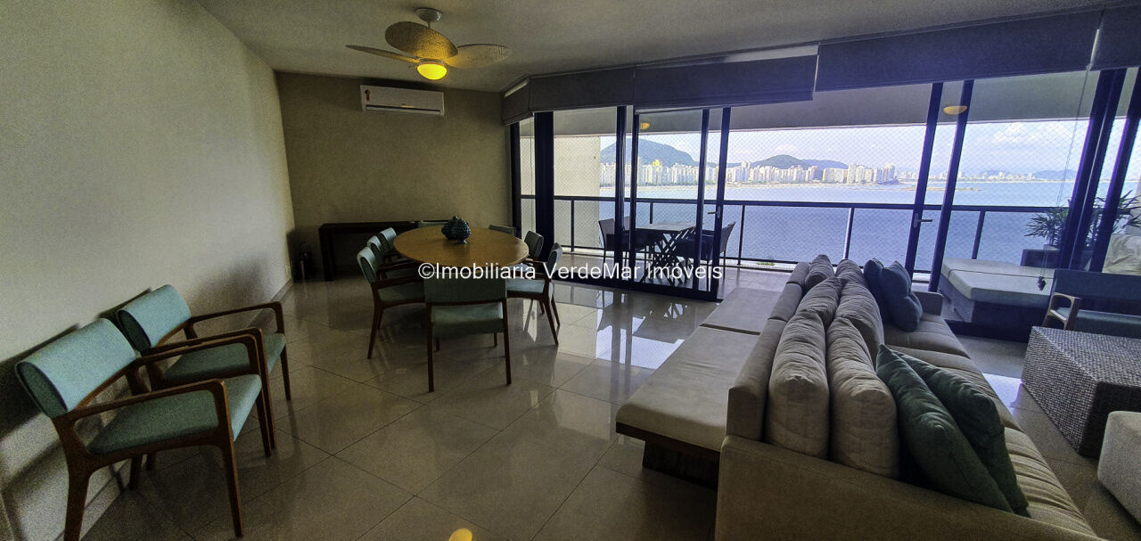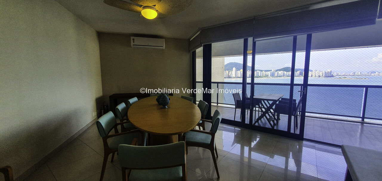 Apartamento mobiliado e decorado na praia das Astúrias em Guarujá, vista para o mar, com 03 suítes, sala para 03 ambientes com sacada envidraçada, cozinha, lavanderia e dependência de empregada.