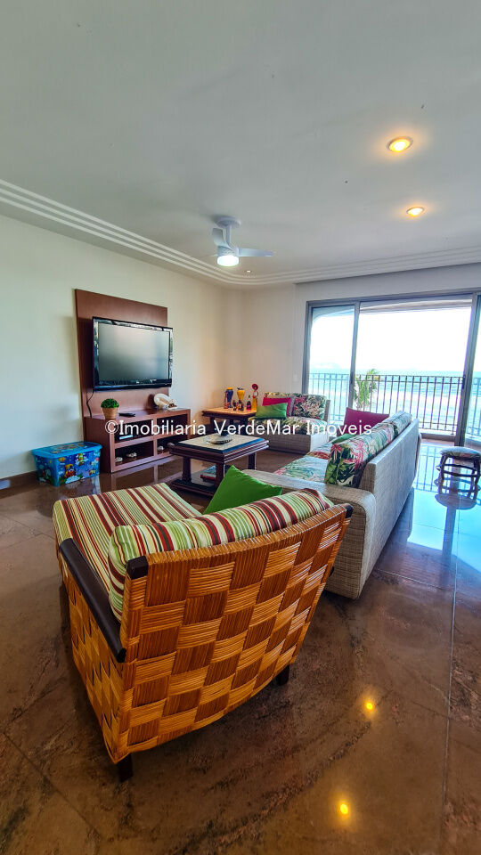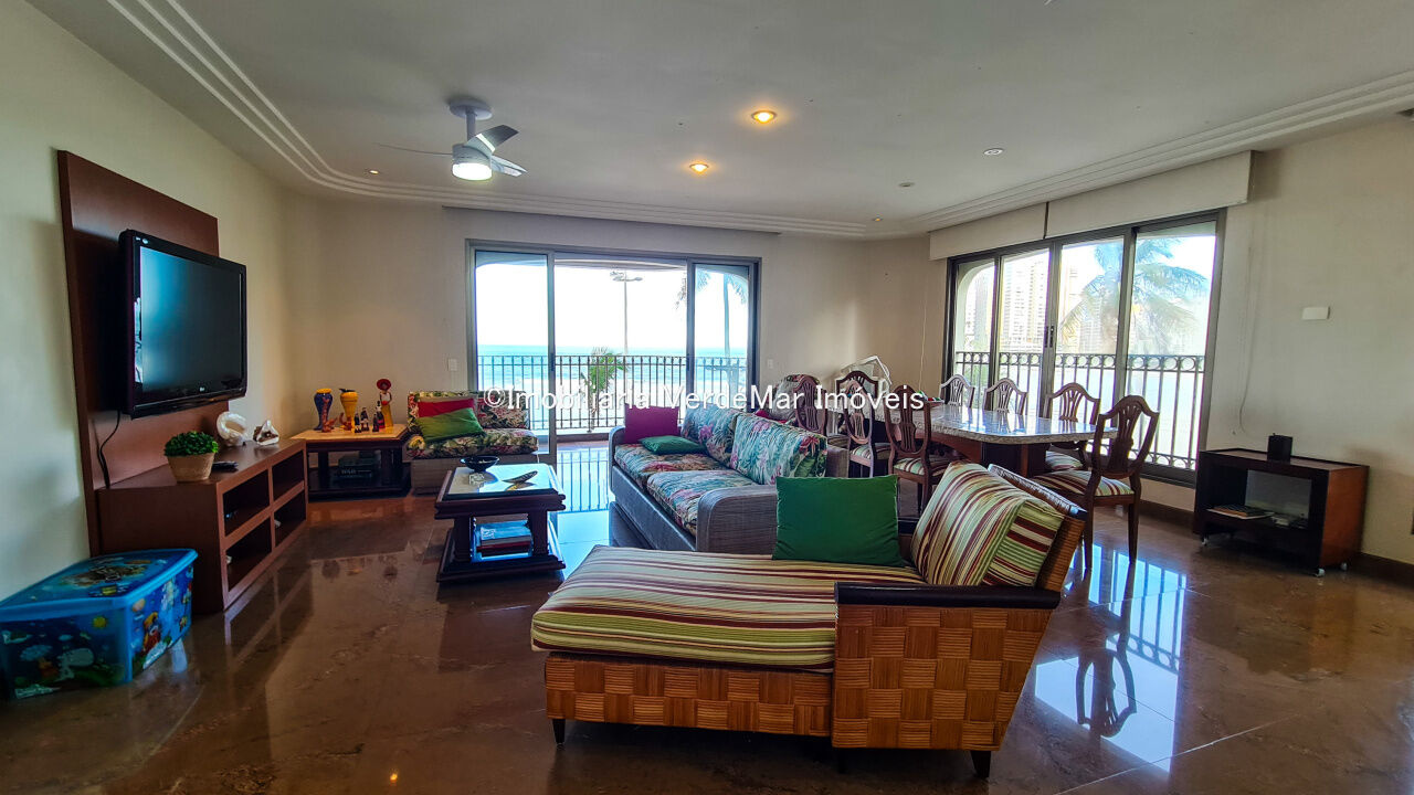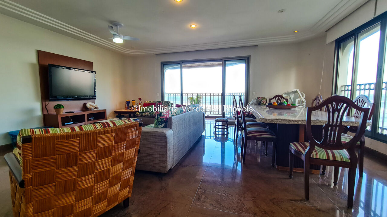 Apartamento à venda na praia das Astúrias em Guarujá, frente ao mar, com 3 suítes sendo a máster com closet e hidromassagem, sala para 2 ambientes com sacada, lavabo, cozinha com armários, lavanderia e dependência de empregada.