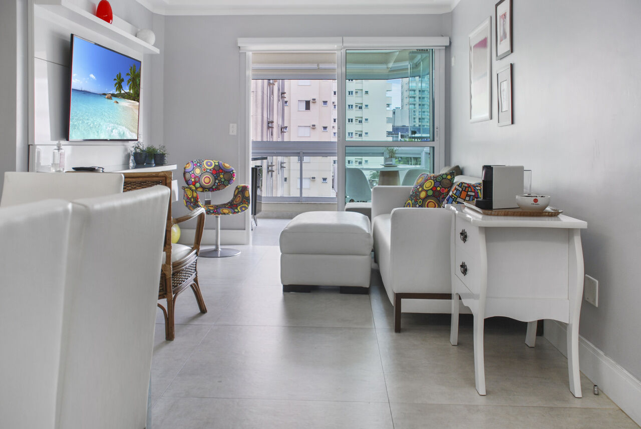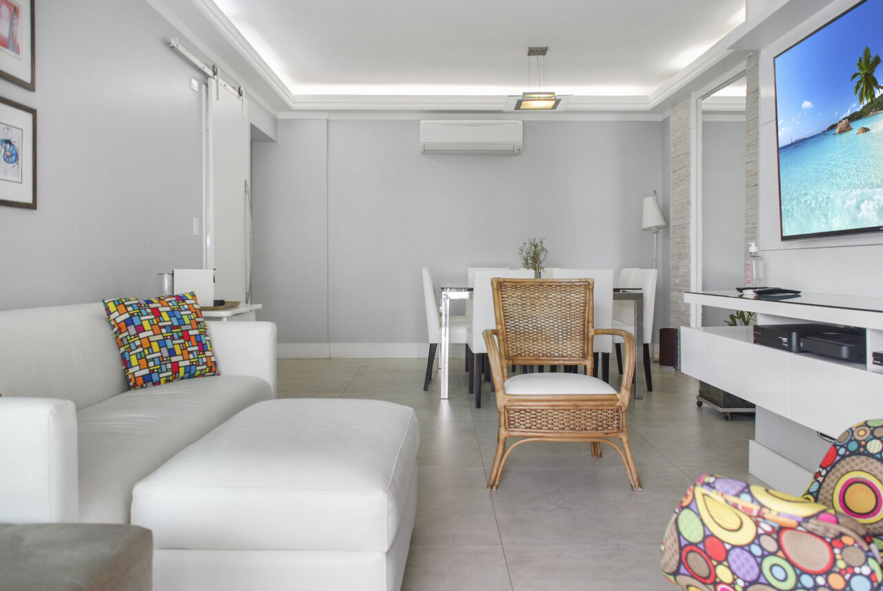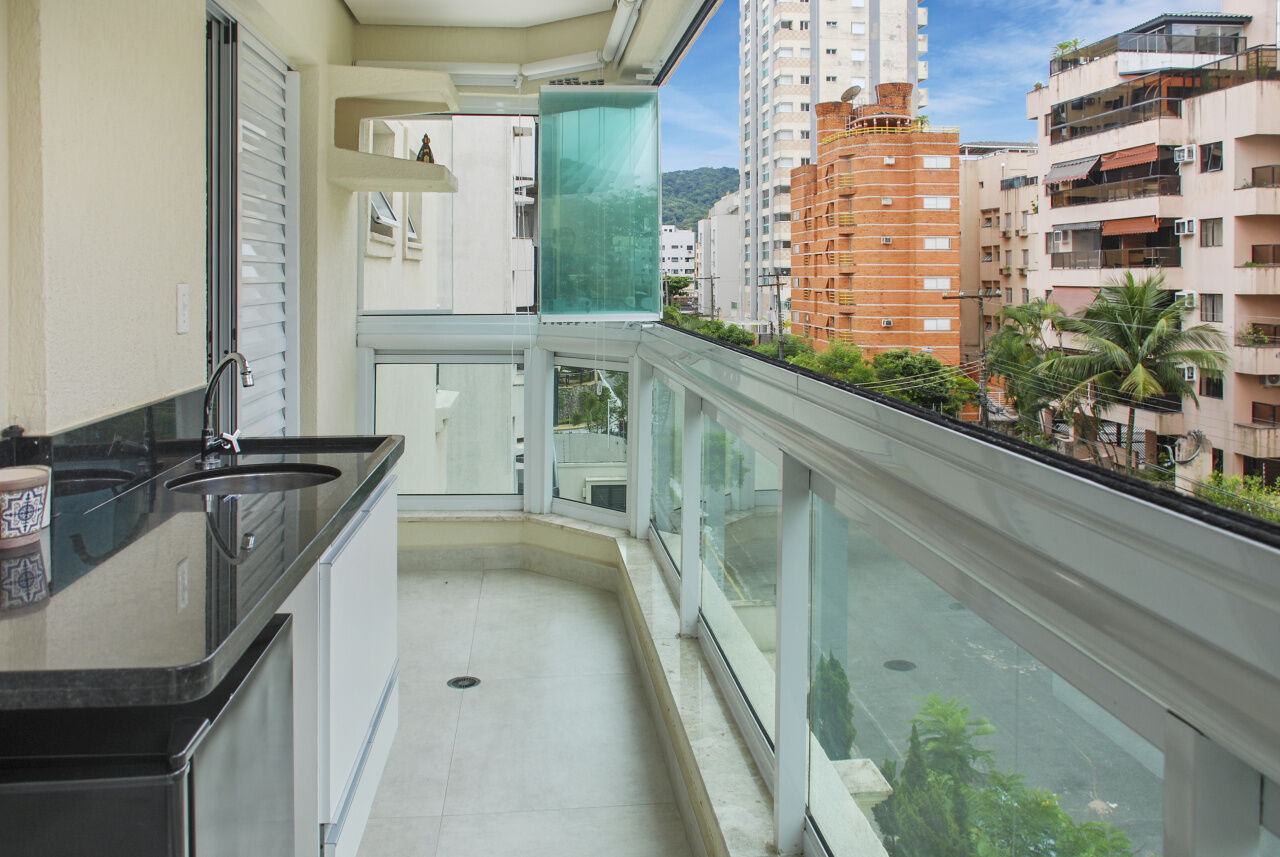 Apartamento à venda na praia da Enseada em Guarujá, vista para o mar, 03 suítes, sala para 02 ambientes com sacada, sala de tv, cozinha planejada, lavanderia e área de serviço.