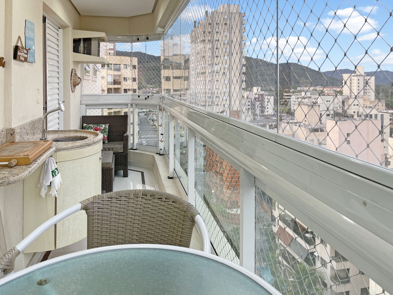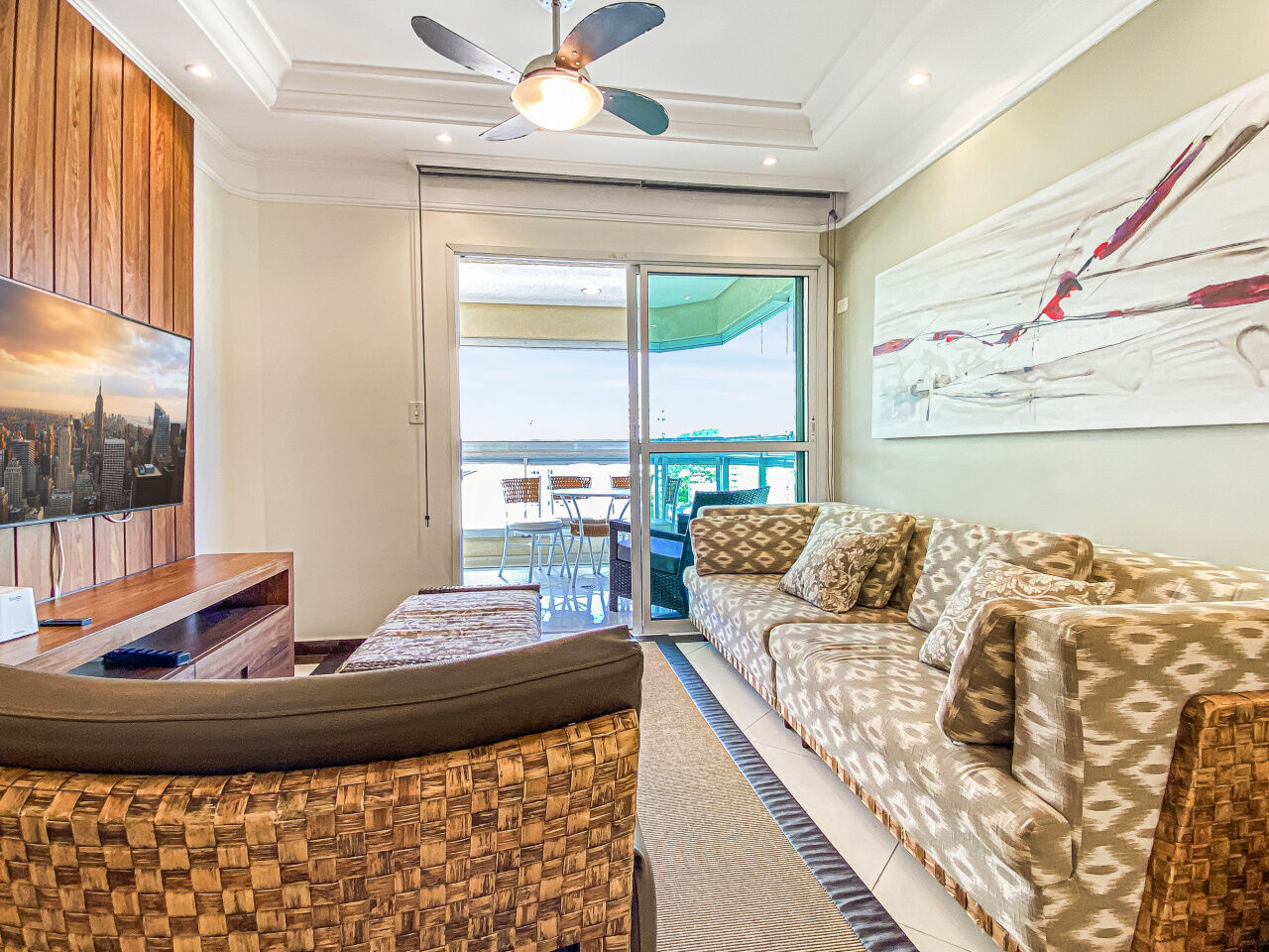 Apartamento à venda na praia da Enseada em Guarujá, vista para o mar, 03 suítes, sala para 02 ambientes com sacada, sala de tv, cozinha planejada, lavanderia e área de serviço.
