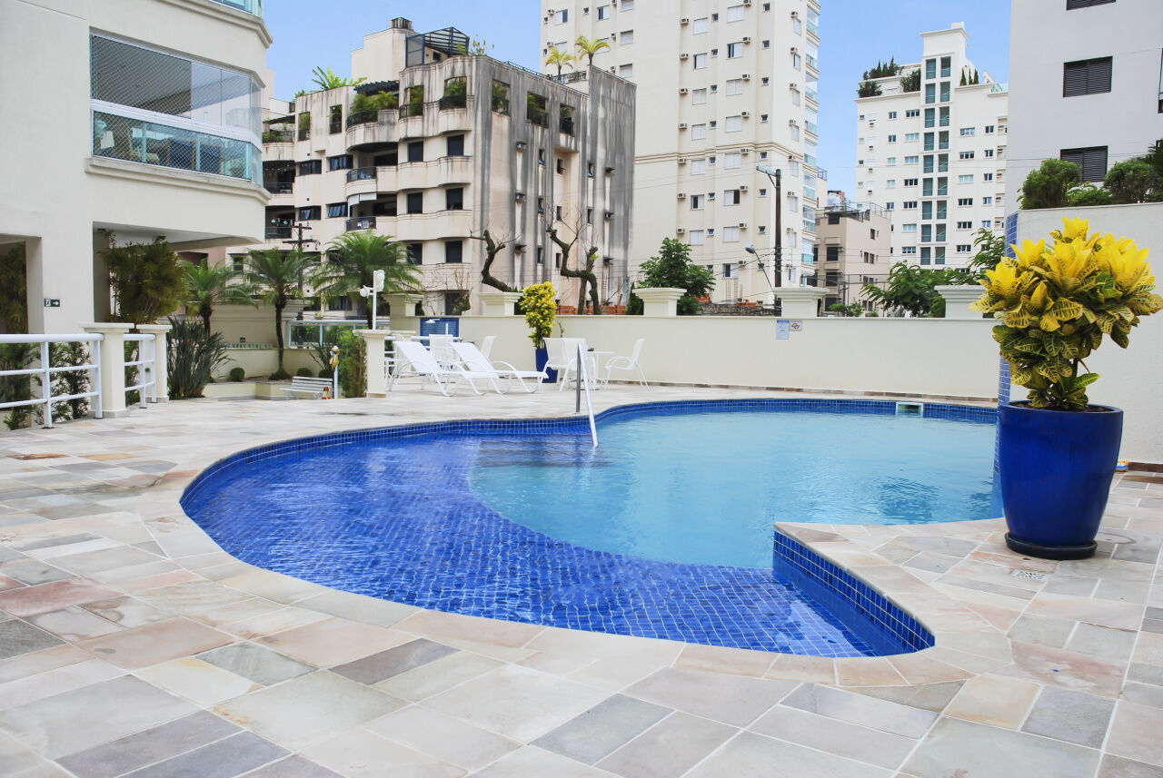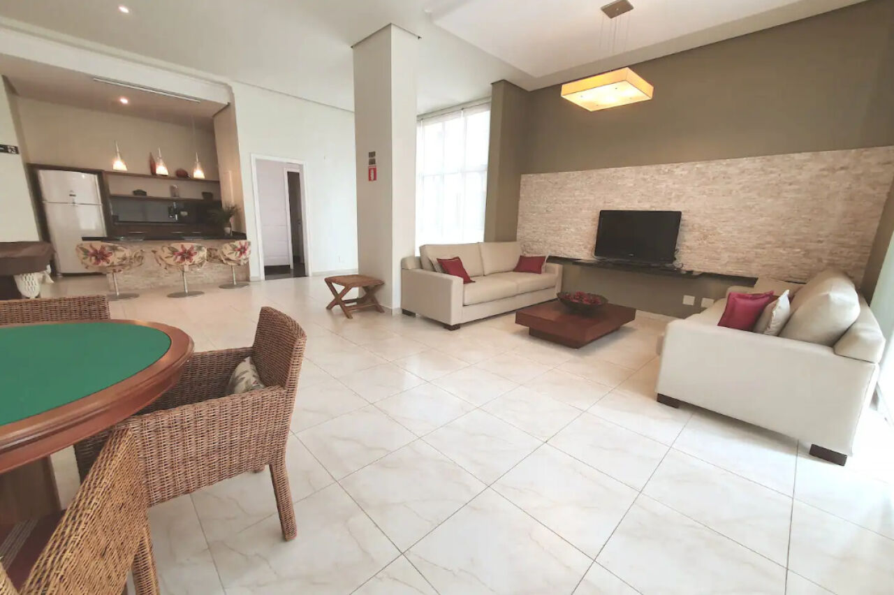 Lazer do prédio com piscina, deck molhado e cascata, saunas seca e úmida, quadra poliesportiva, brinquedoteca, salão de jogos e vídeo, salão de festas com churrasqueira e forno de pizza.