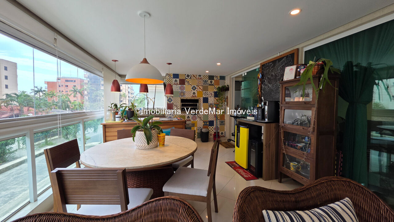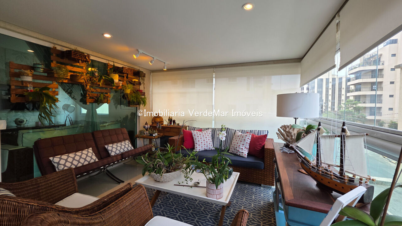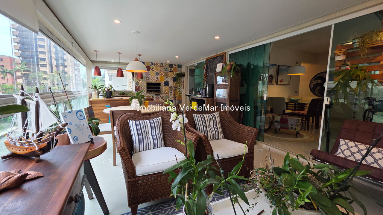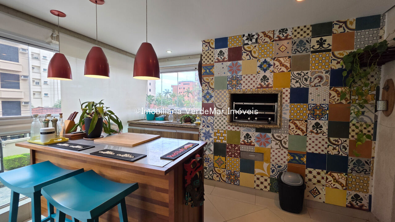 Apartamento na praia da Enseada em Guarujá, com 03 dormitórios sendo 01 suíte, sala para 02 ambientes com terraço envidraçado e espaço gourmet com churrasqueira, cozinha planejada e lavanderia.