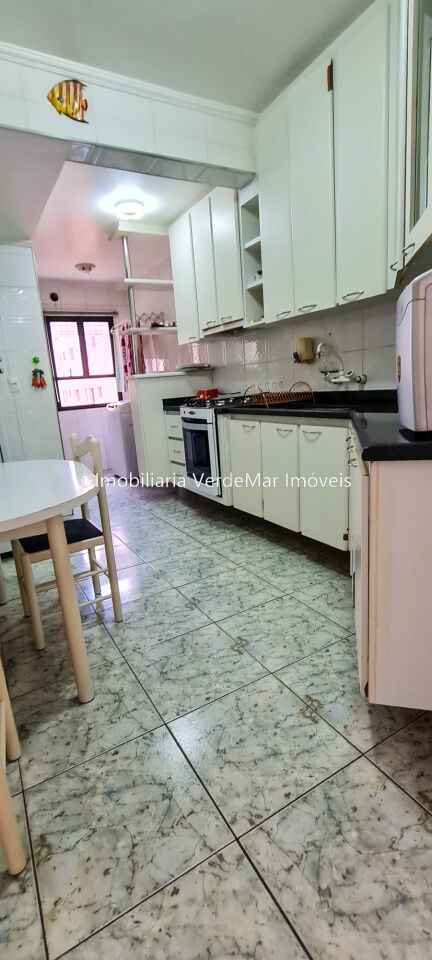 Apartamento à venda na praia da Enseada em Guarujá, com 3 suítes, sala para 02 ambientes com sacada gourmet, cozinha planejada, lavabo e área de serviço.