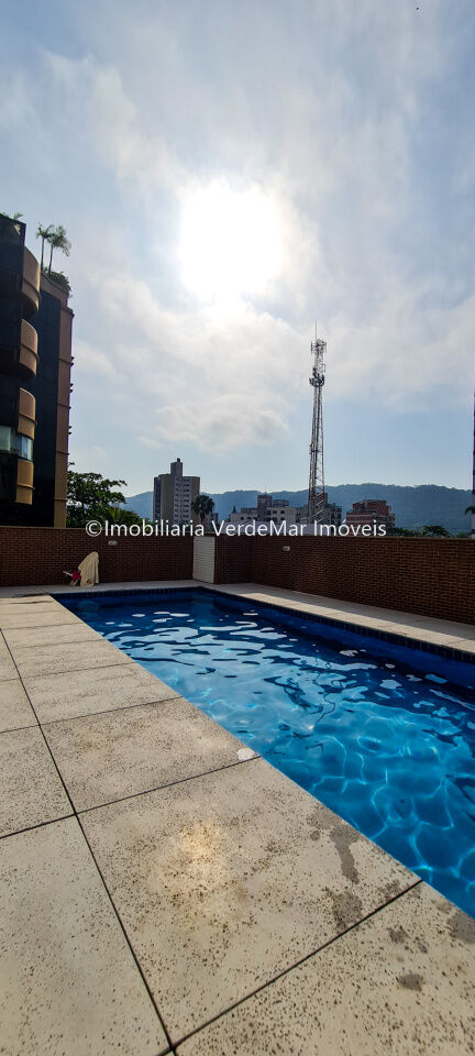 Apartamento em prédio com lazer e terraço gourmet a venda na praia da Enseada em Guarujá, região da antiga Brunella, com 03 dormitorios sendo 01 suite, sala para 02 ambientes com sacada gourmet, cozinha americana, lavanderia de wc de empregada.