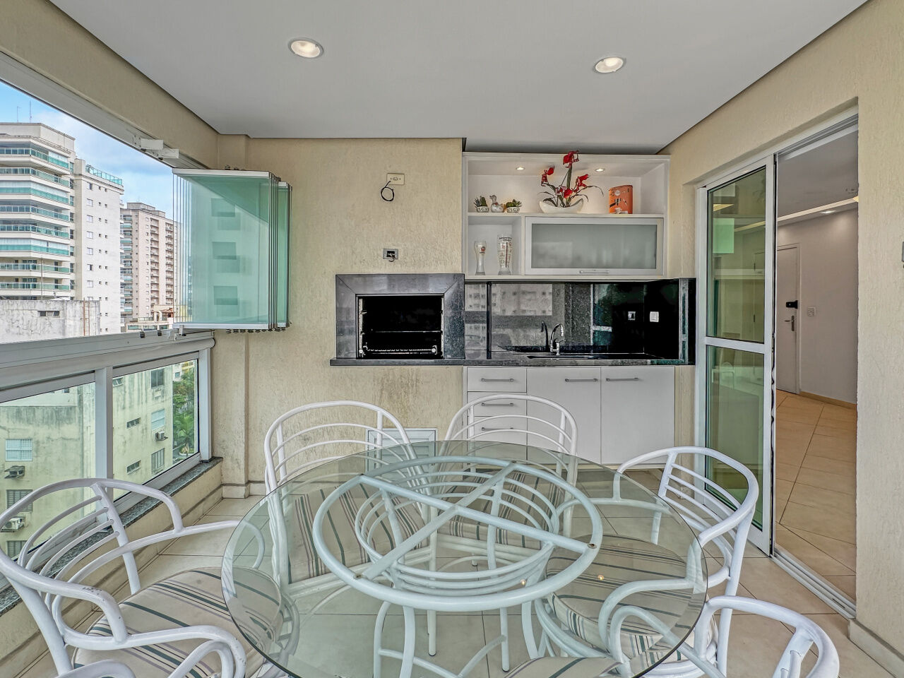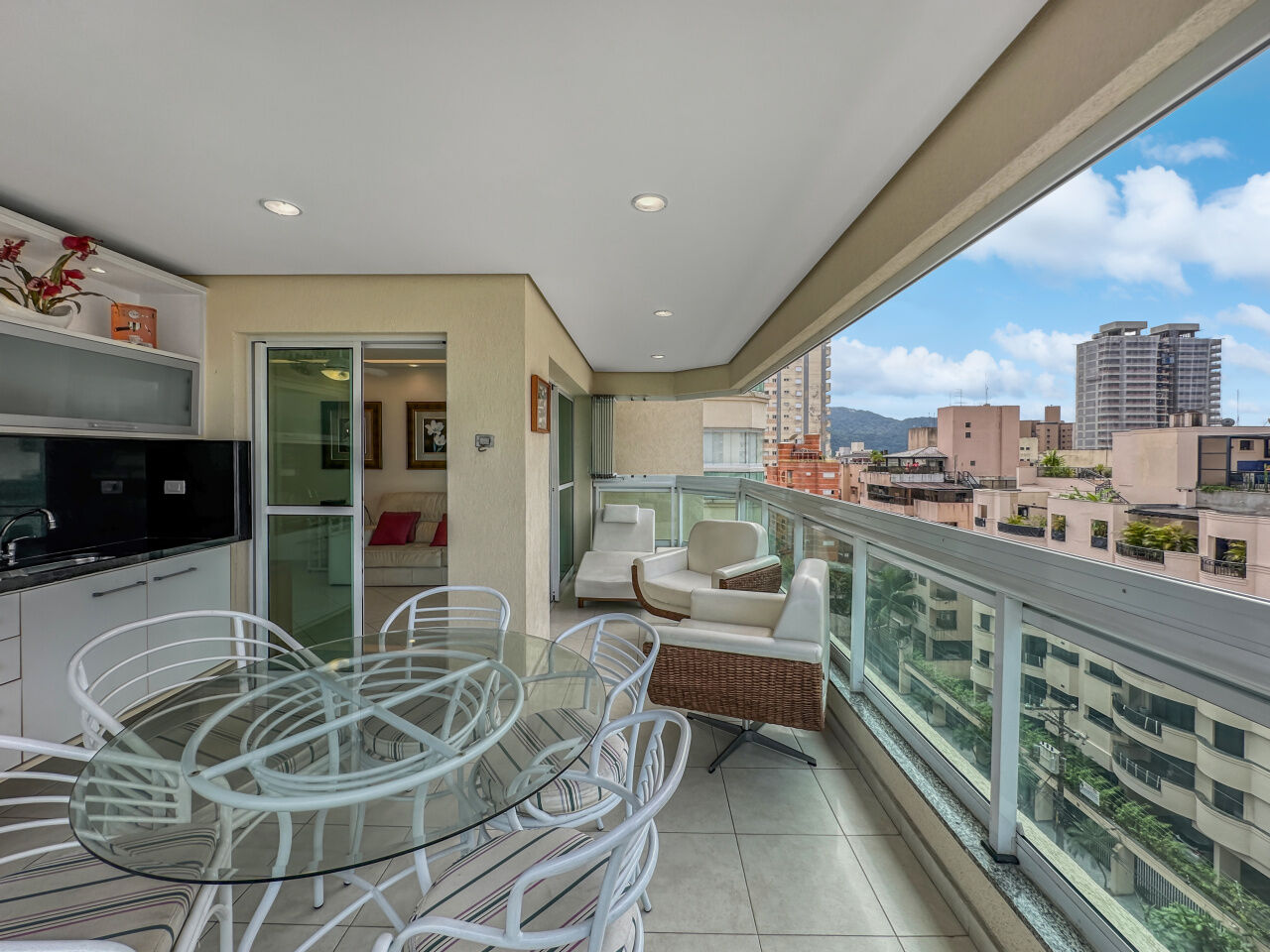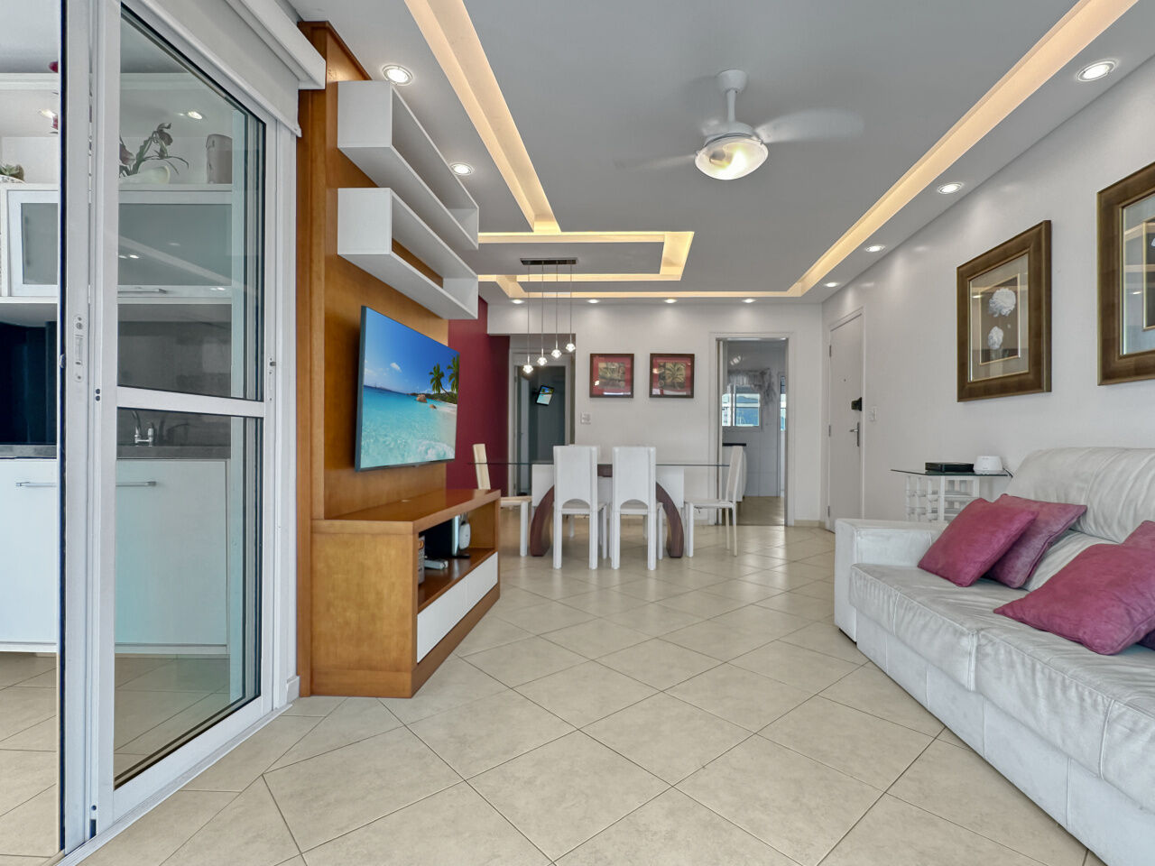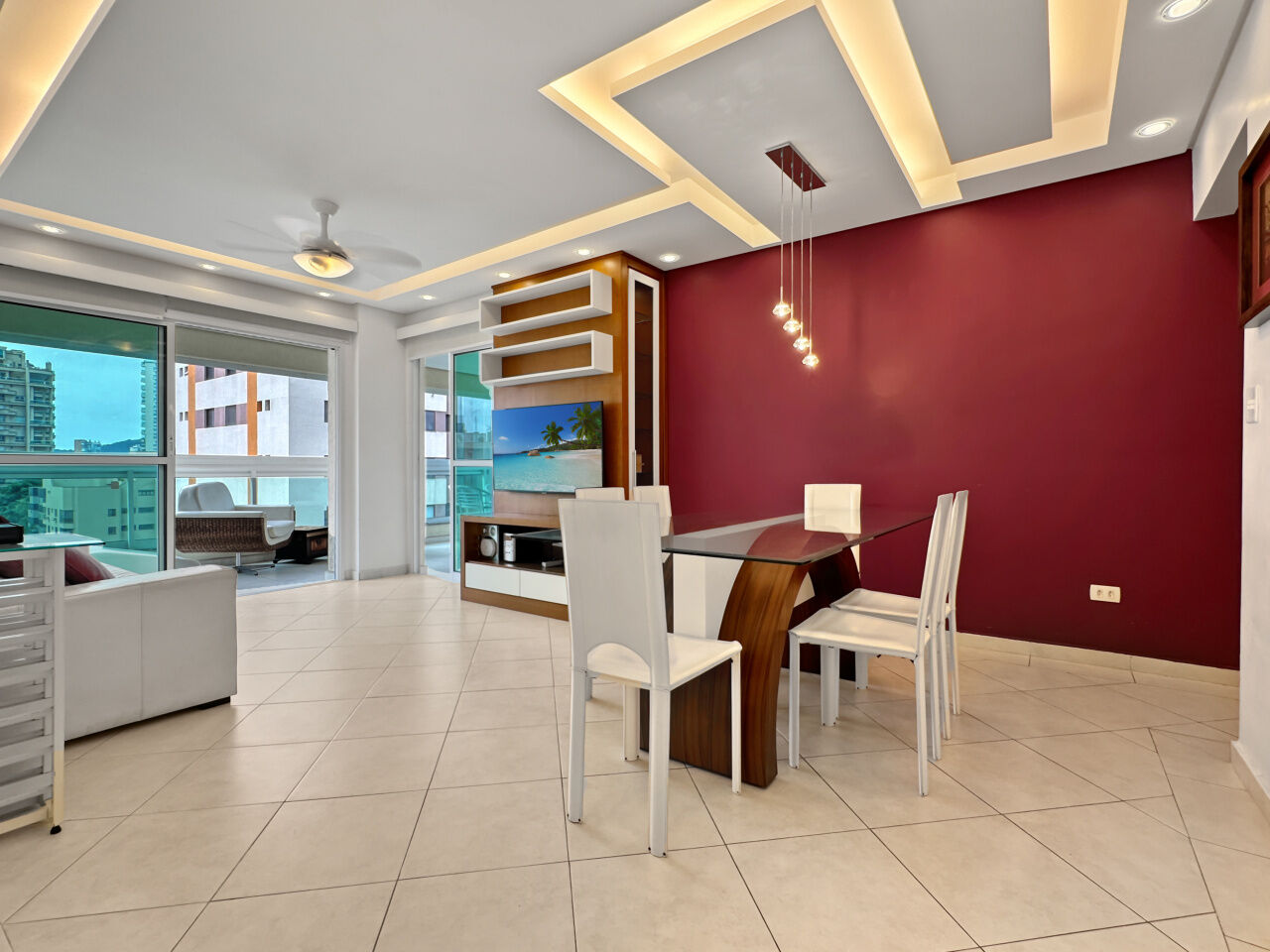 Apartamento à venda na praia da Enseada em Guarujá, vista para o mar, 03 suítes, sala para 02 ambientes com sacada, sala de tv, cozinha planejada, lavanderia e área de serviço.