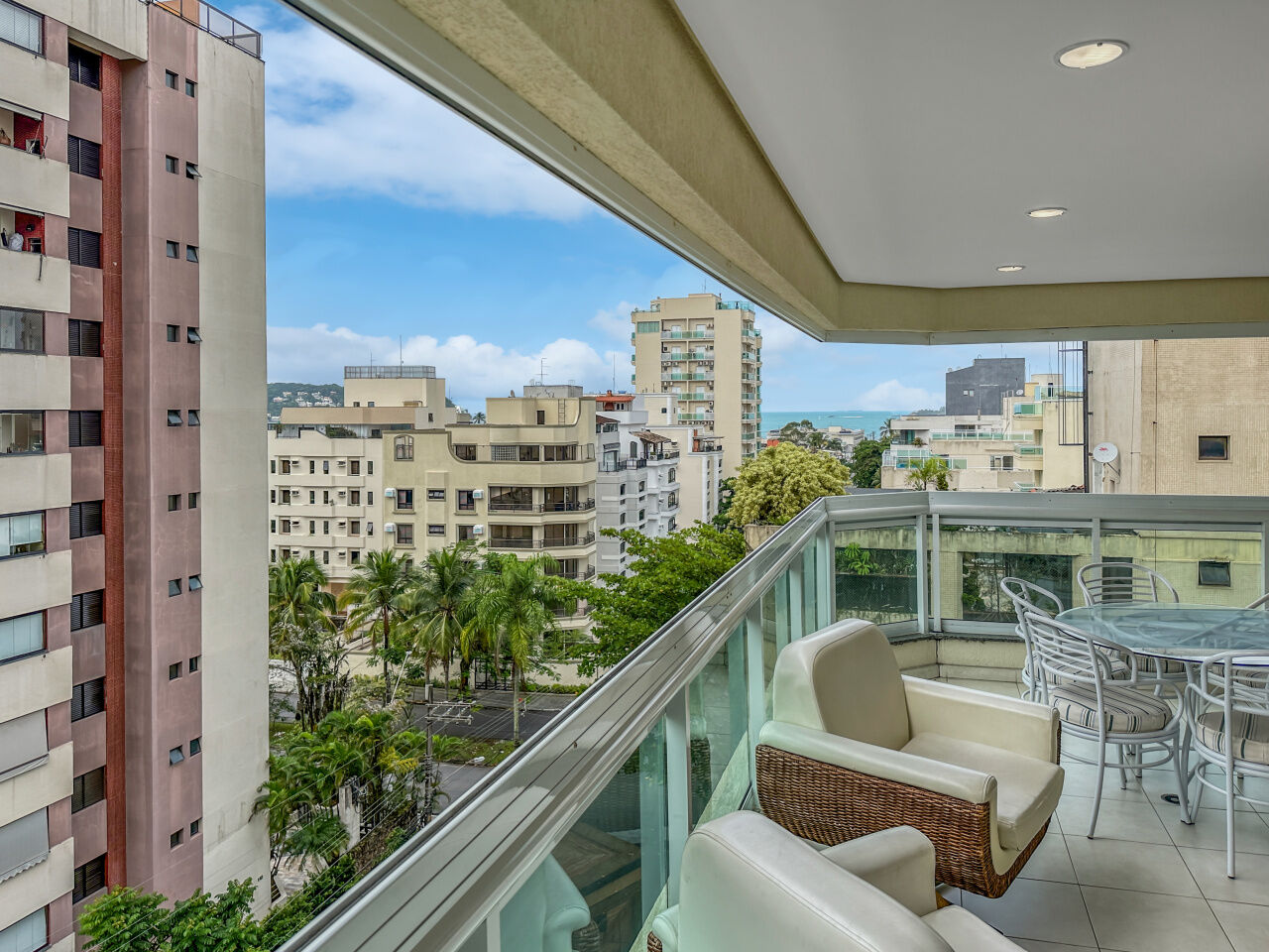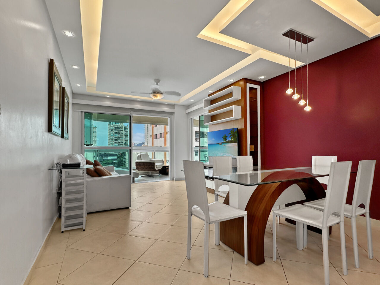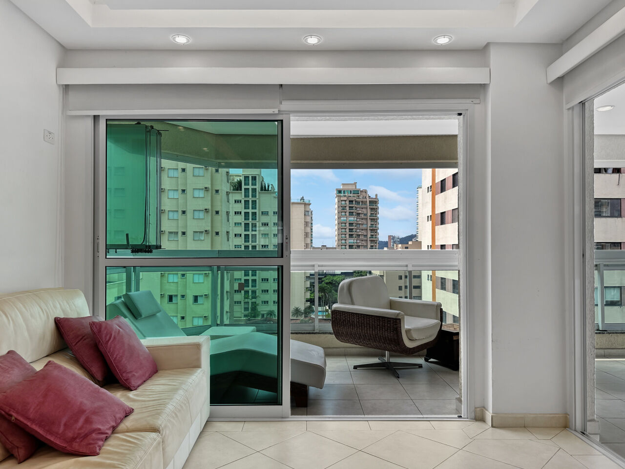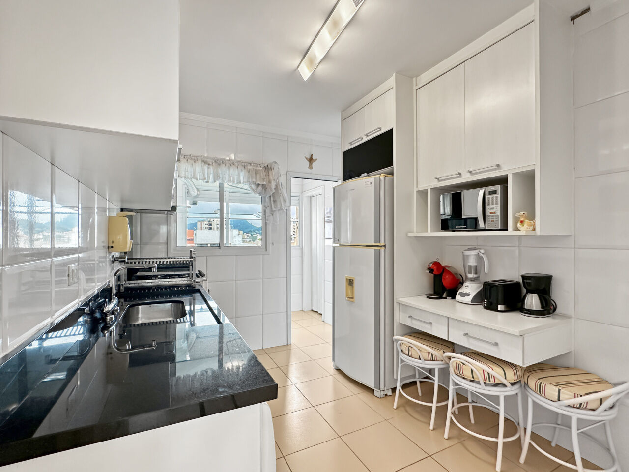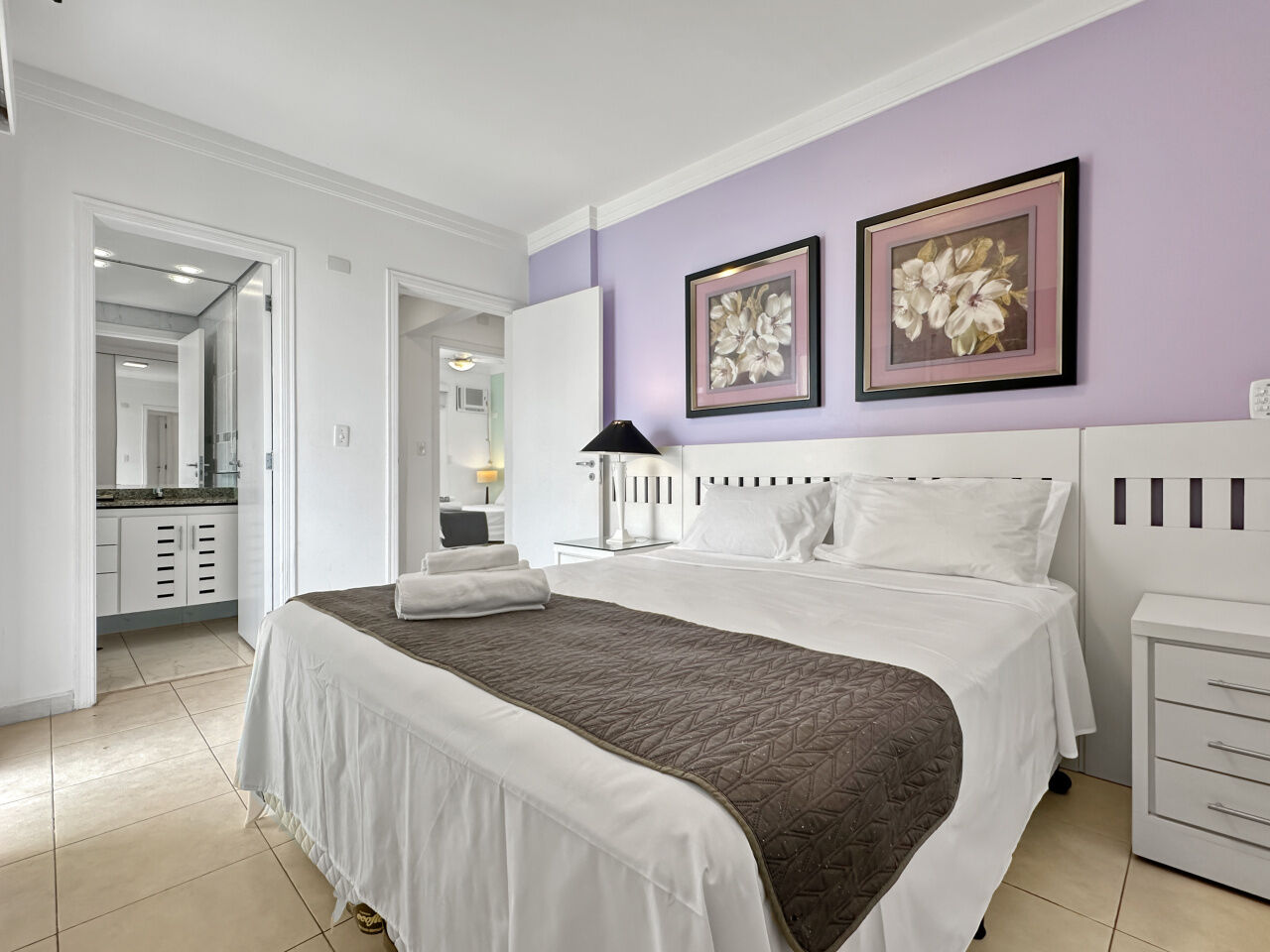 Apartamento à venda na praia da Enseada em Guarujá, vista para o mar, 03 suítes, sala para 02 ambientes com sacada, sala de tv, cozinha planejada, lavanderia e área de serviço.