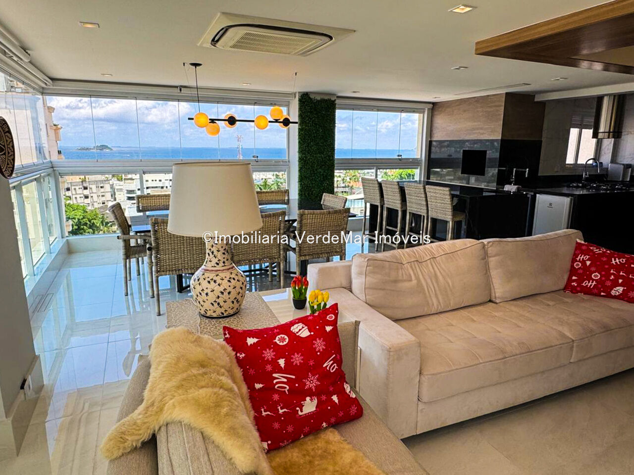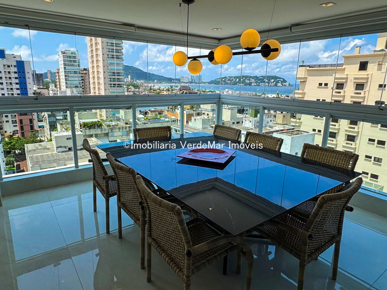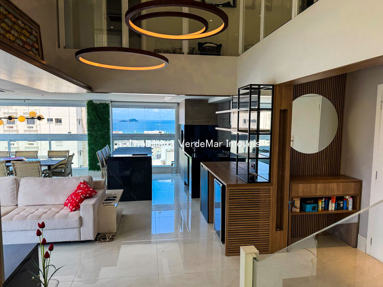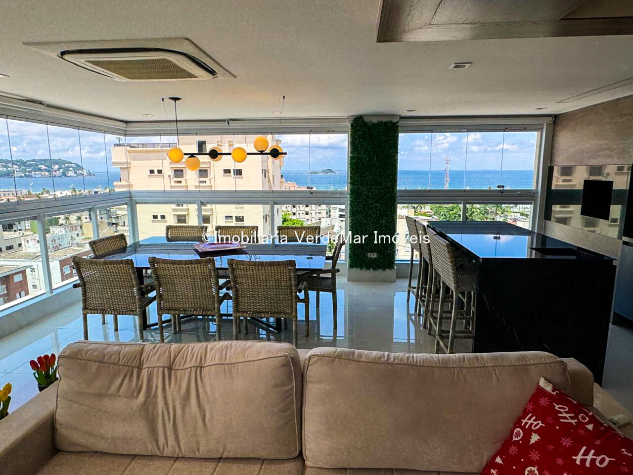 Apartamento duplex à venda na praia da Enseada em Guarujá, vista para o mar, com 03 suítes, sala para 02 ambientes com sacada gourmet, lavabo, cozinha planejada e área de serviço.