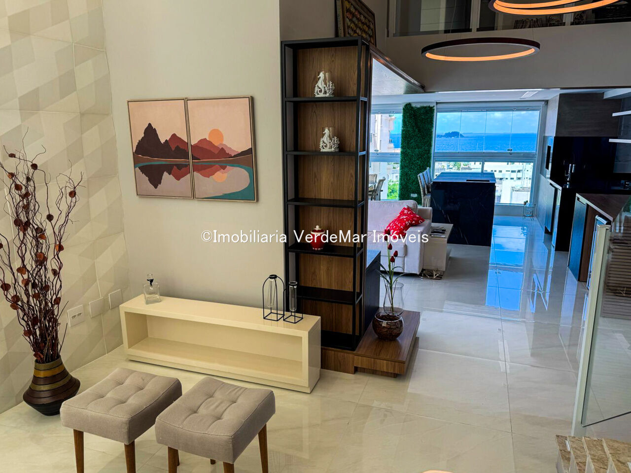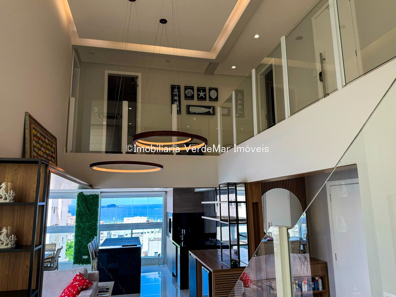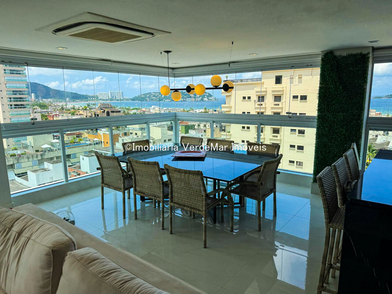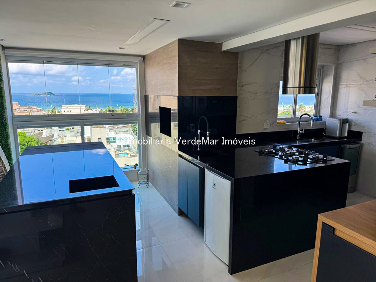 Apartamento duplex à venda na praia da Enseada em Guarujá, vista para o mar, com 03 suítes, sala para 02 ambientes com sacada gourmet, lavabo, cozinha planejada e área de serviço.