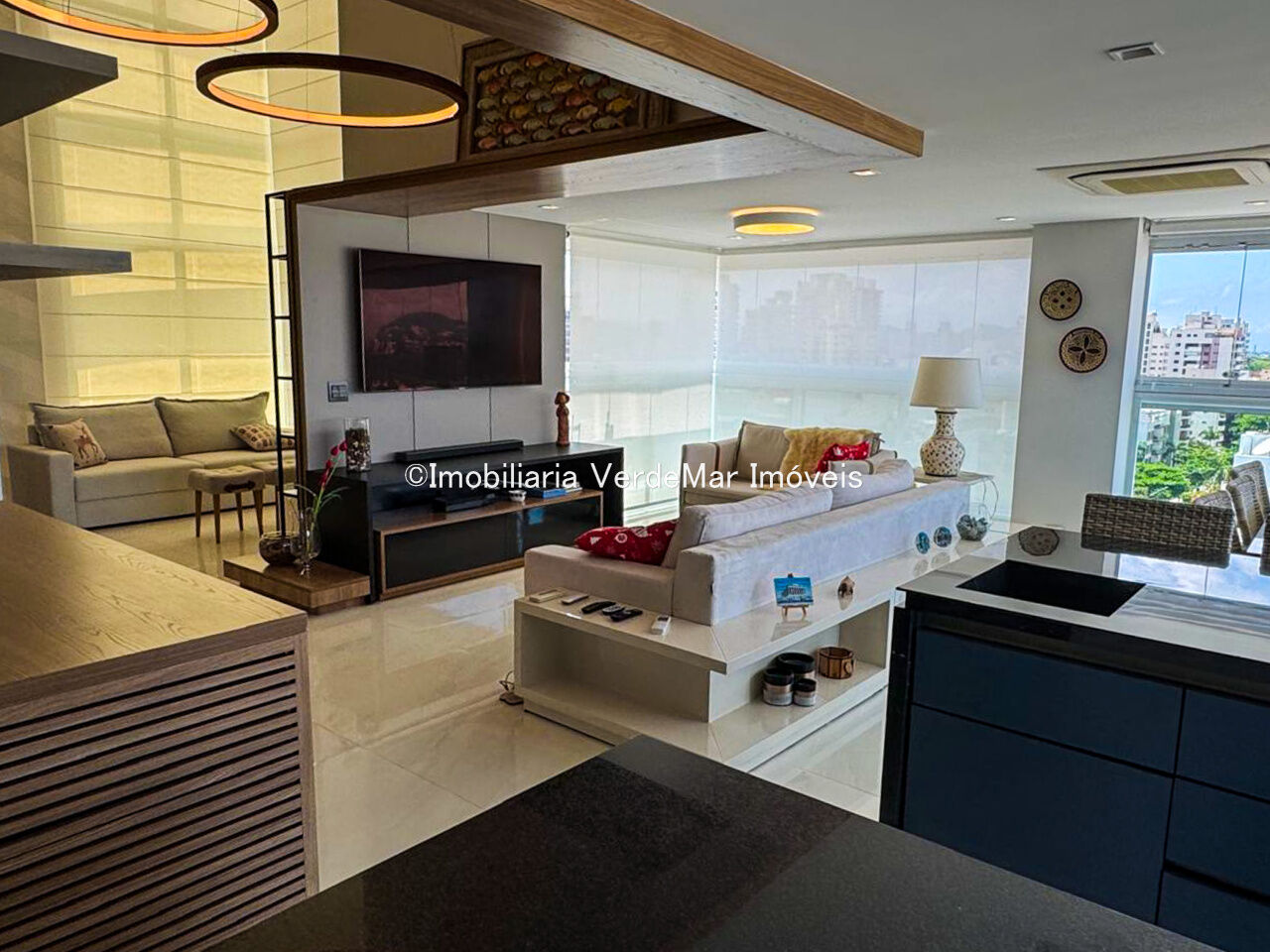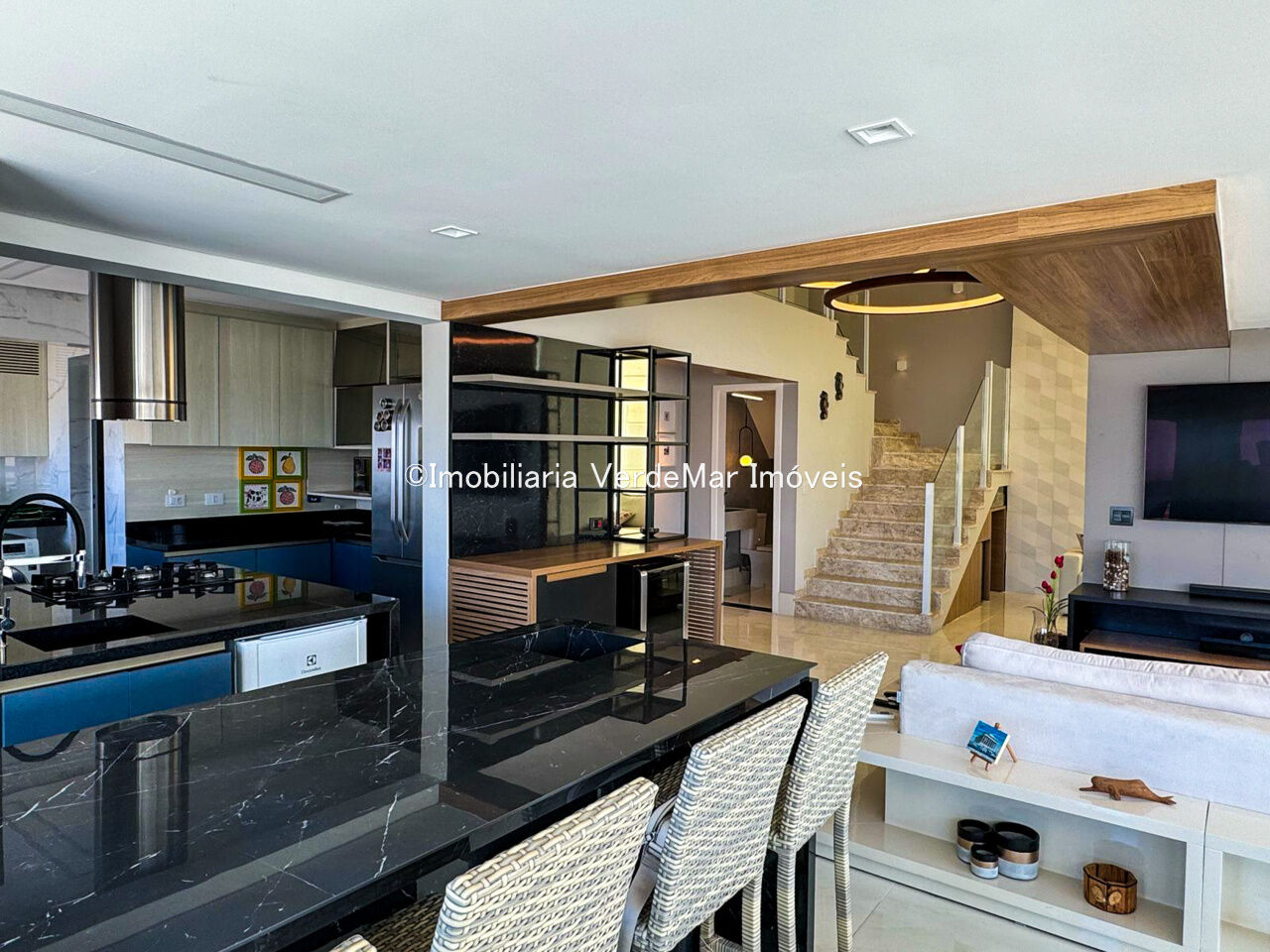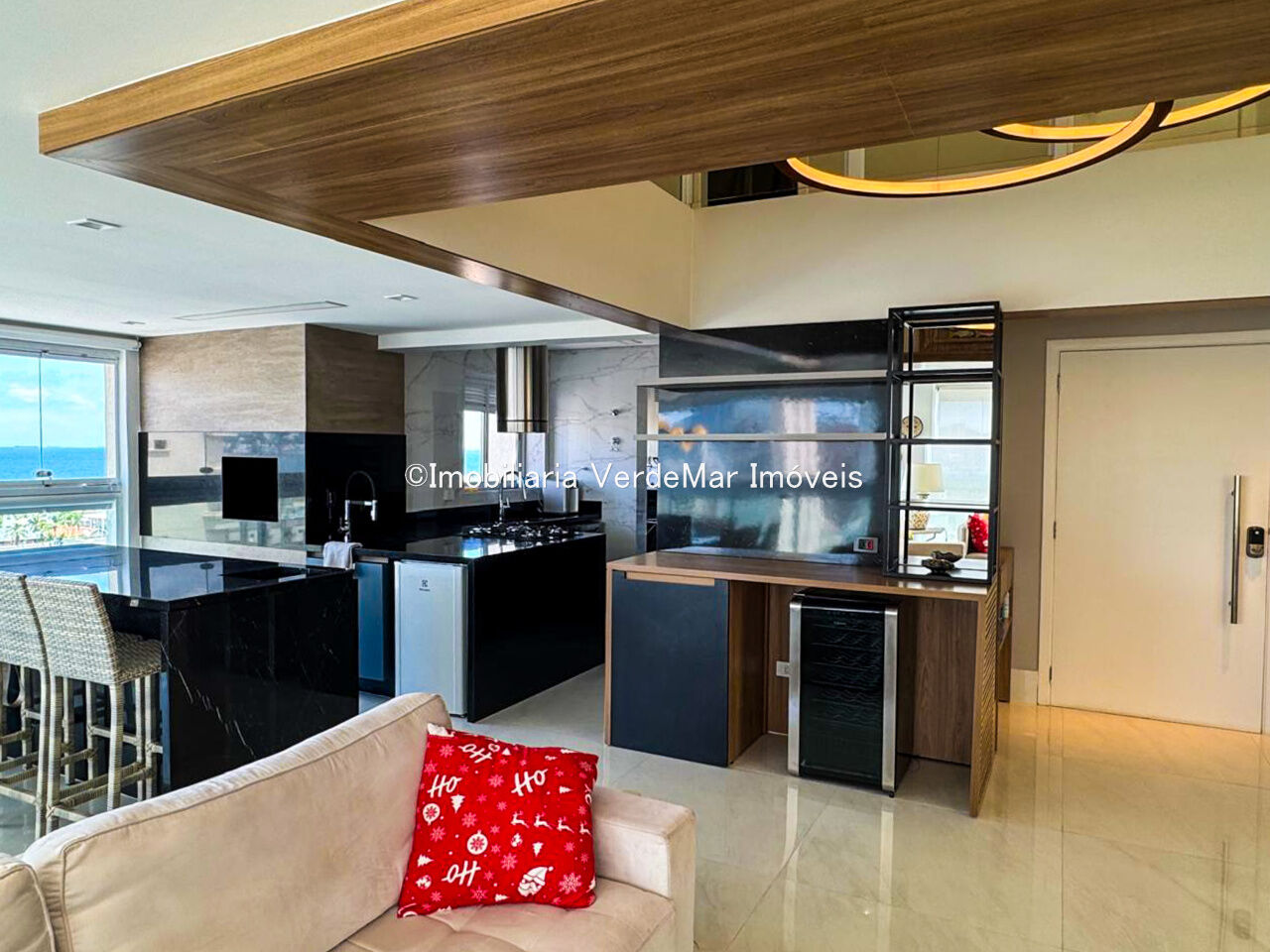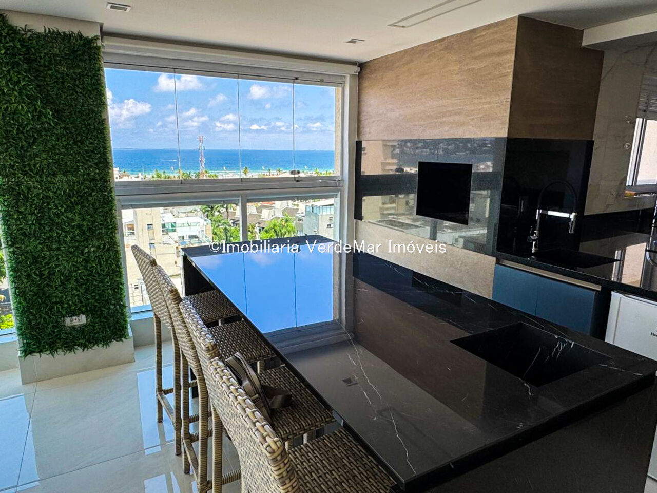 Apartamento duplex à venda na praia da Enseada em Guarujá, vista para o mar, com 03 suítes, sala para 02 ambientes com sacada gourmet, lavabo, cozinha planejada e área de serviço.
