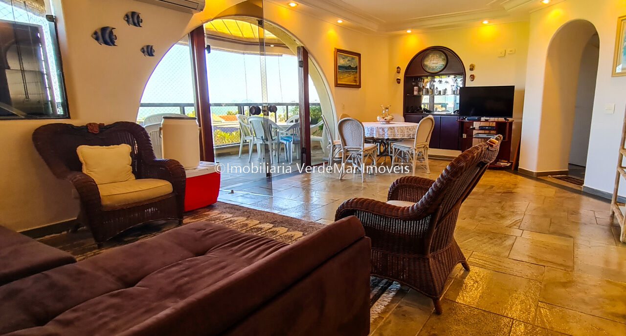 Apartamento com vista ao mar à venda na praia da Enseada em Guarujá, com 4 dormitórios sendo 1 suíte, sala para 2 ambientes com varanda, lavabo, cozinha planeja e área de serviços.