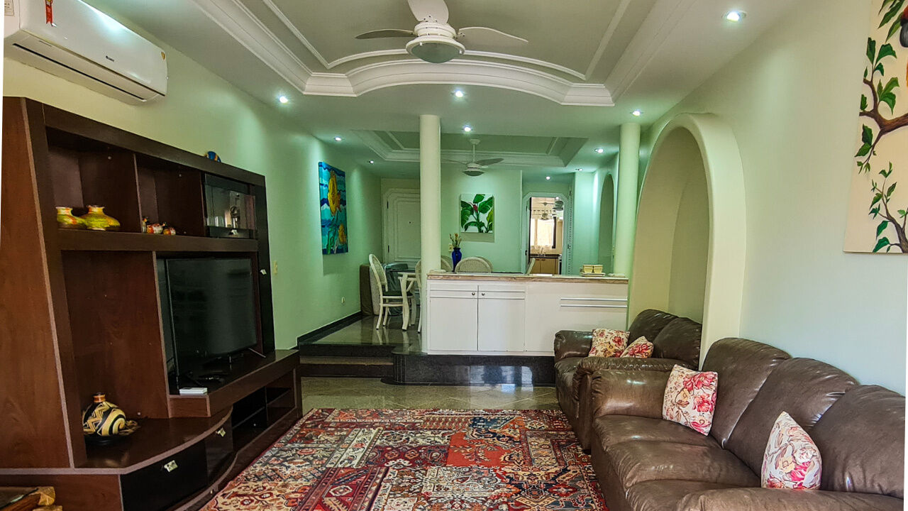 Apartamento à venda na praia da Enseada em Guarujá, região Brunella, com 3 suítes, sala para 2 ambientes com varanda, lavabo, cozinha planeja, área de serviços e dependência de empregada.