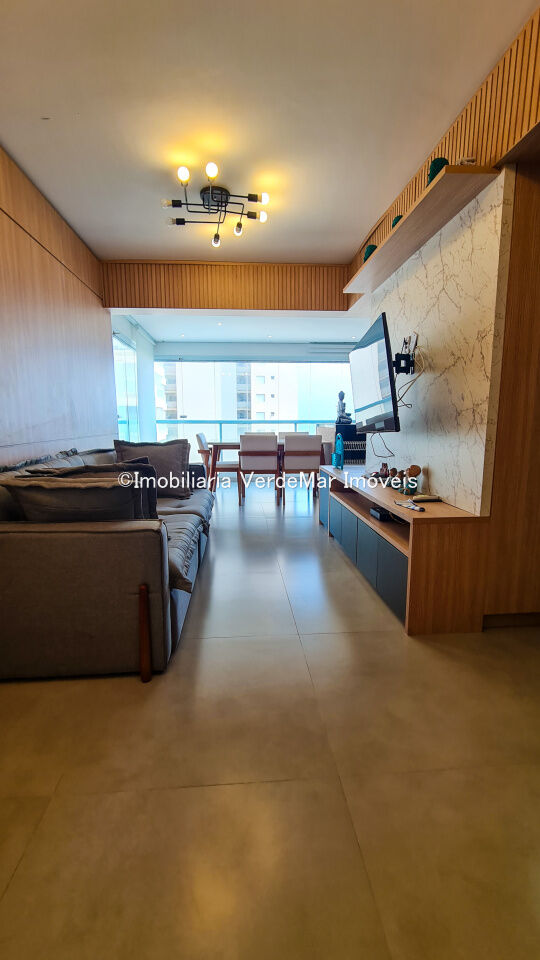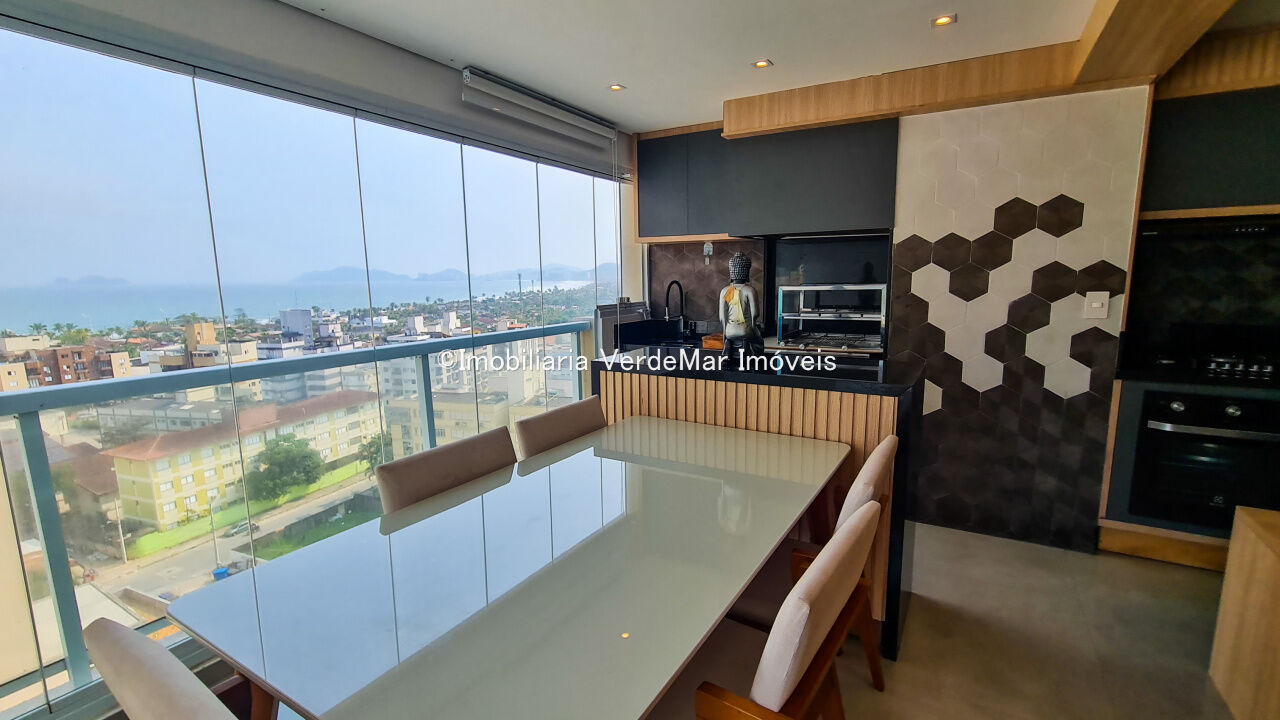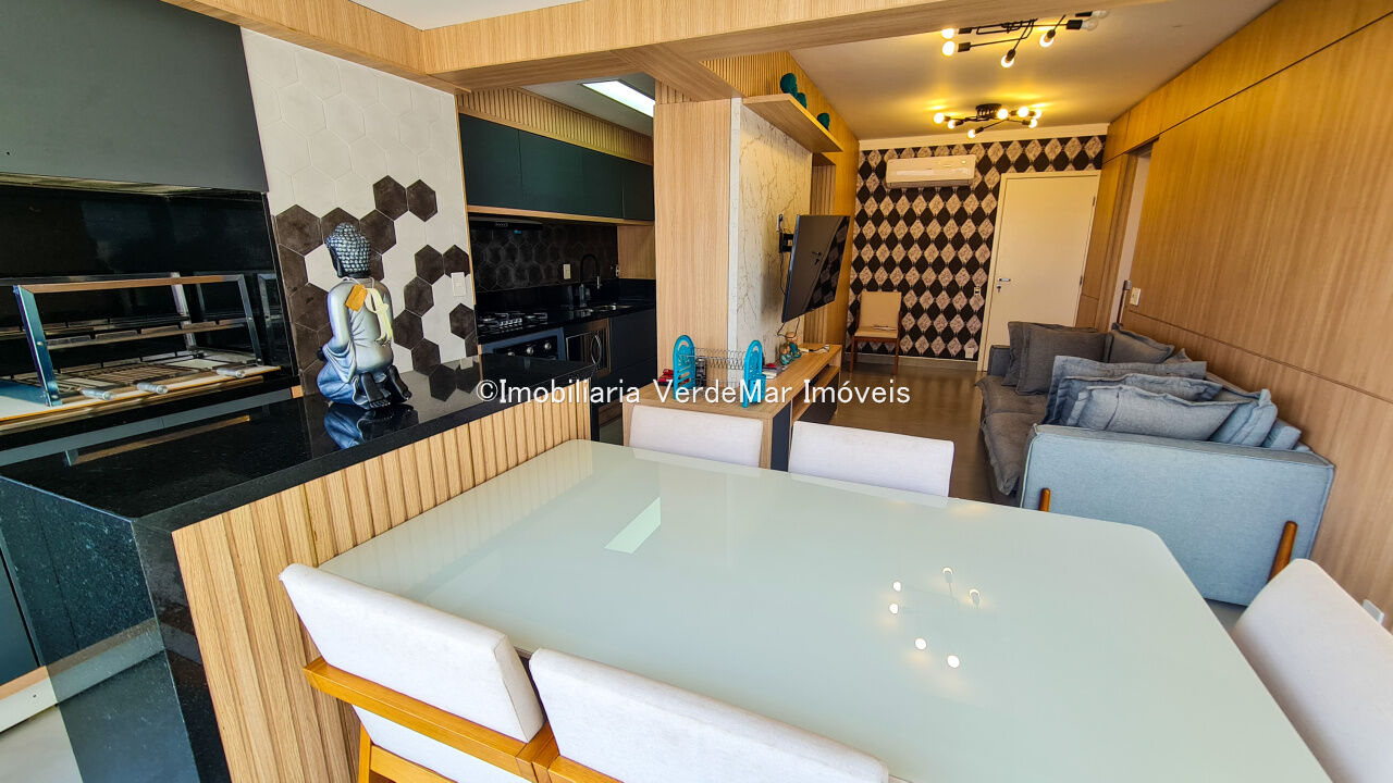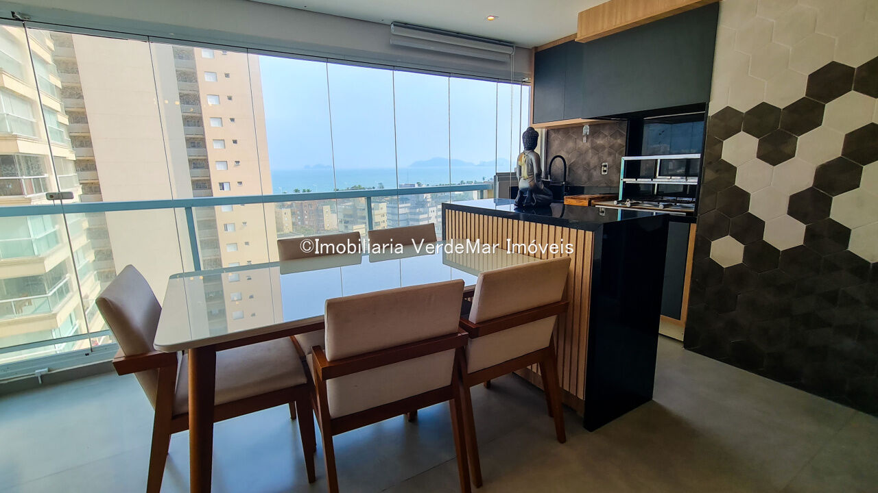 Apartamento à venda na praia da Enseada com vista ao mar, com 2 dormitórios sendo 1 suíte, sala 2 ambientes com terraço gourmet, cozinha planejada e lavanderia.
