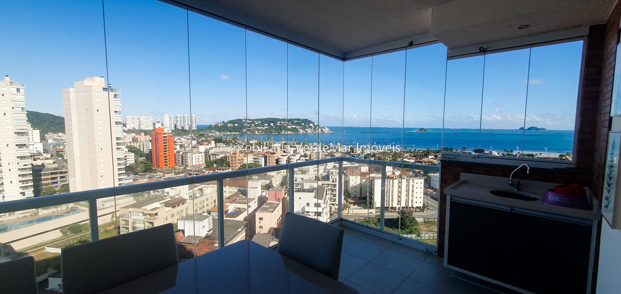 Apartamento à venda na praia da Enseada em Guarujá, com 02 dormitórios sendo 01 suíte, sala para 02 ambientes com varanda envidraçada, cozinha americana planejada, lavanderia e varanda gourmet com churrasqueira.
