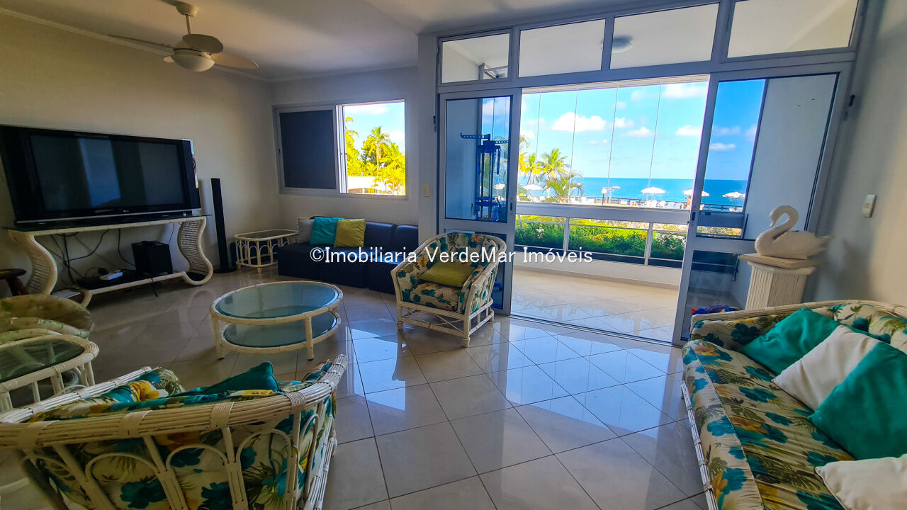 Apartamento no Condomínio Penhasco Cinco Estrelas na Praia da Enseada em Guarujá, vista para o mar, mobiliado e decorado, ar condicionado, 03 dormitórios sendo 1 suíte, sala para 2 ambientes com sacada envidraçada, cozinha planejada e área de serviço.