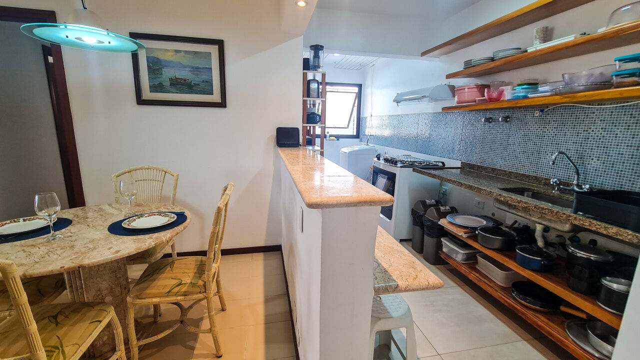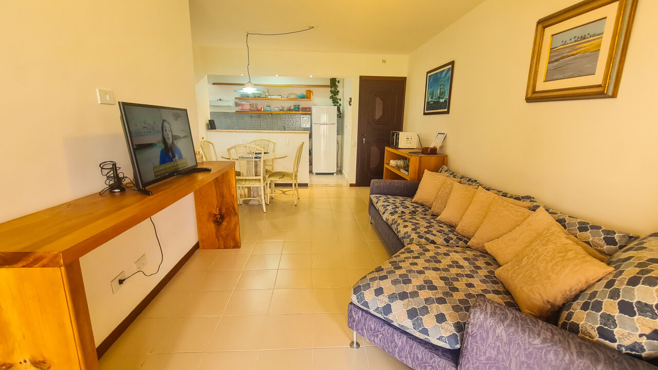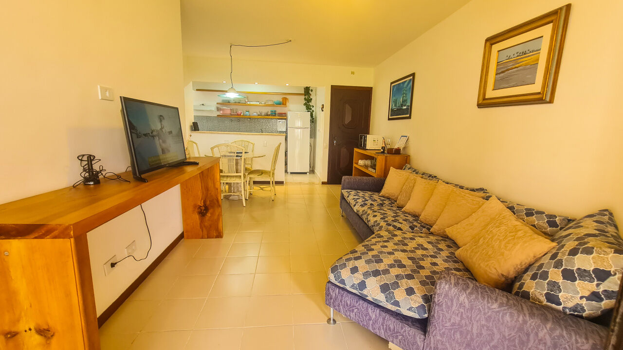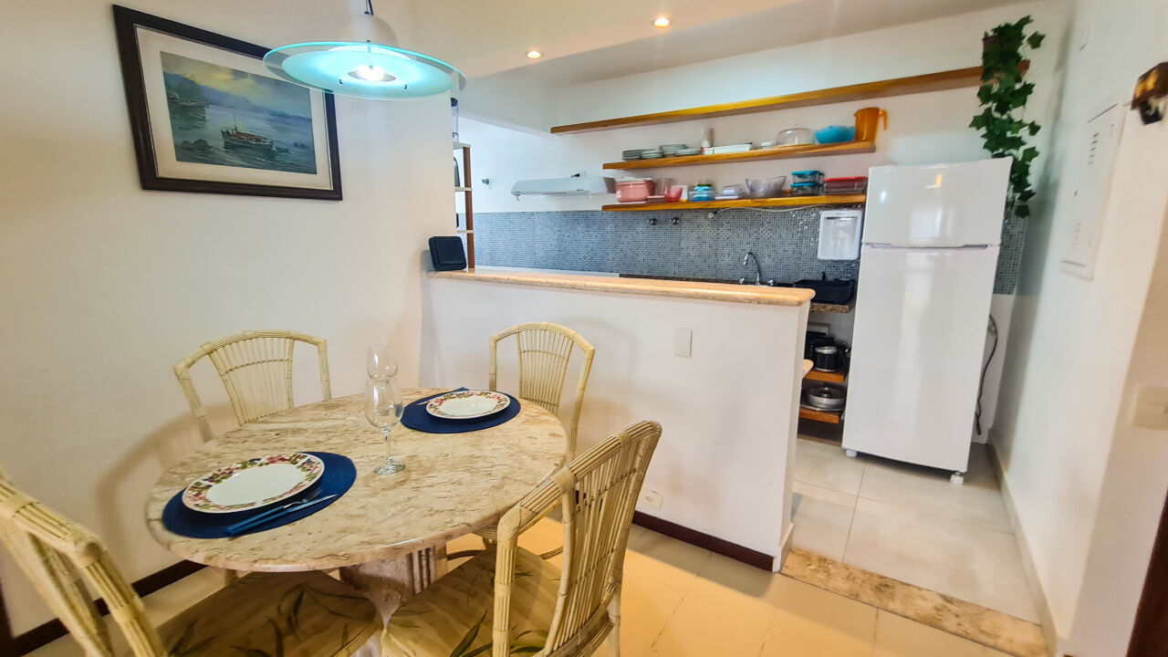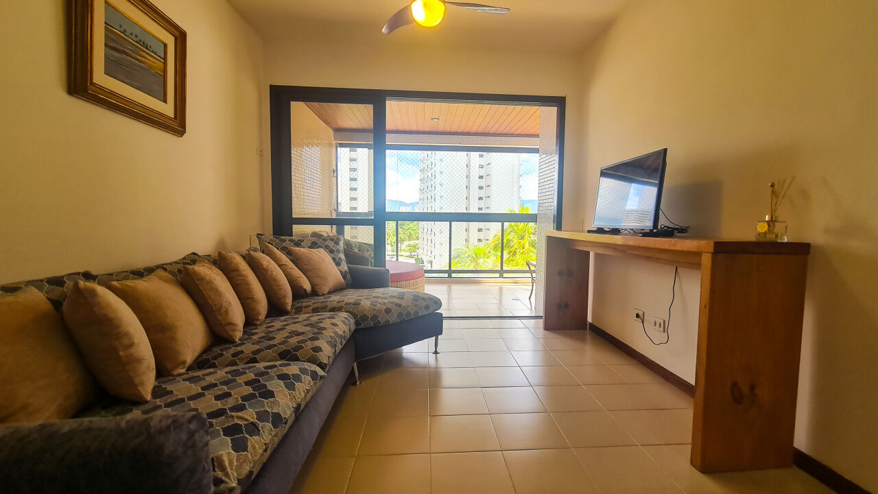 Apartamento no Condomínio Costão das Tartarugas na Praia da Enseada no Guarujá, com 2 dormitórios sendo 1 suíte, sala para 2 ambientes com varanda mobiliável, cozinha planejada, área de serviço e dependência de empregada reversível.