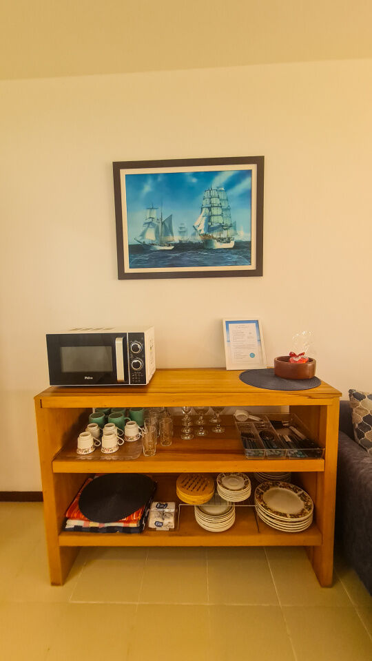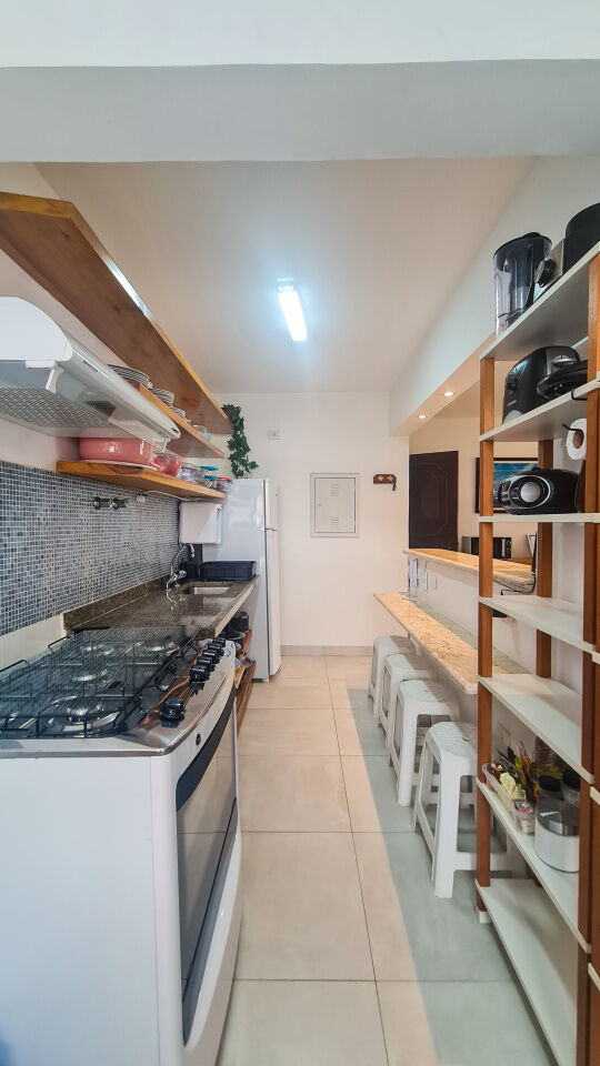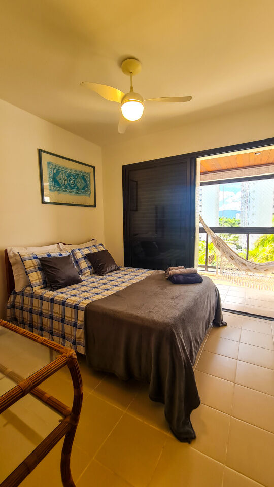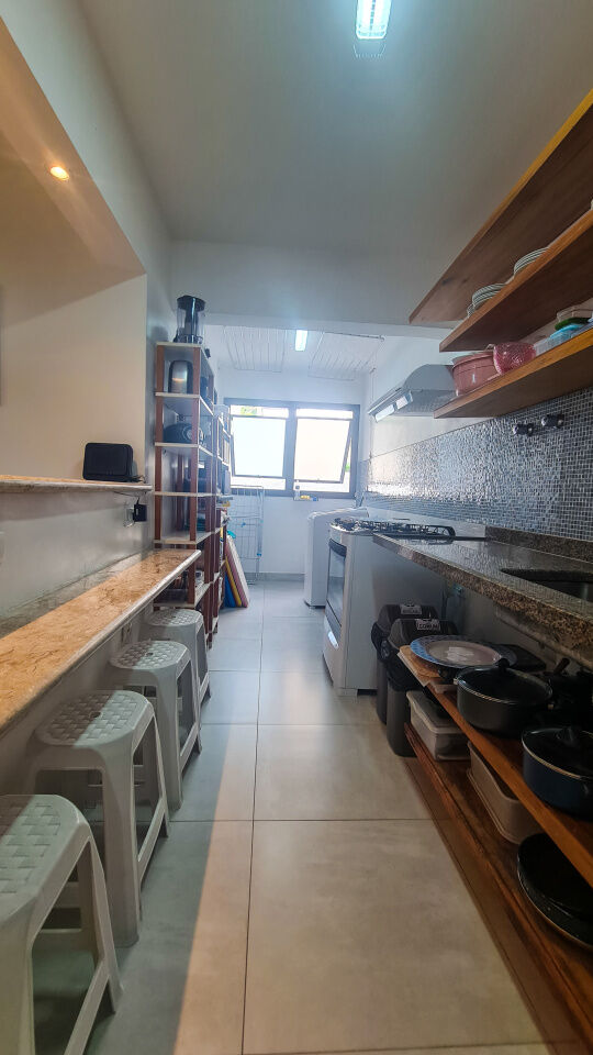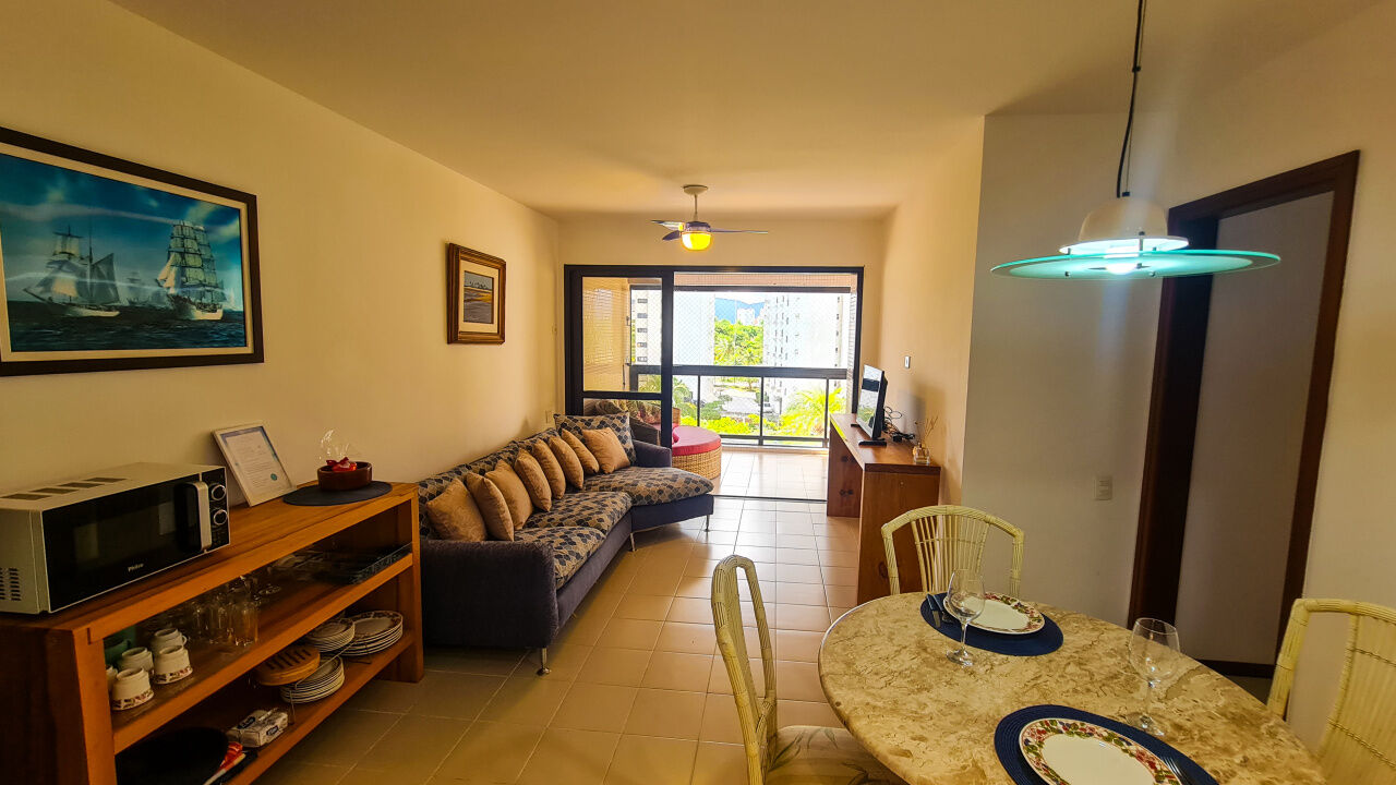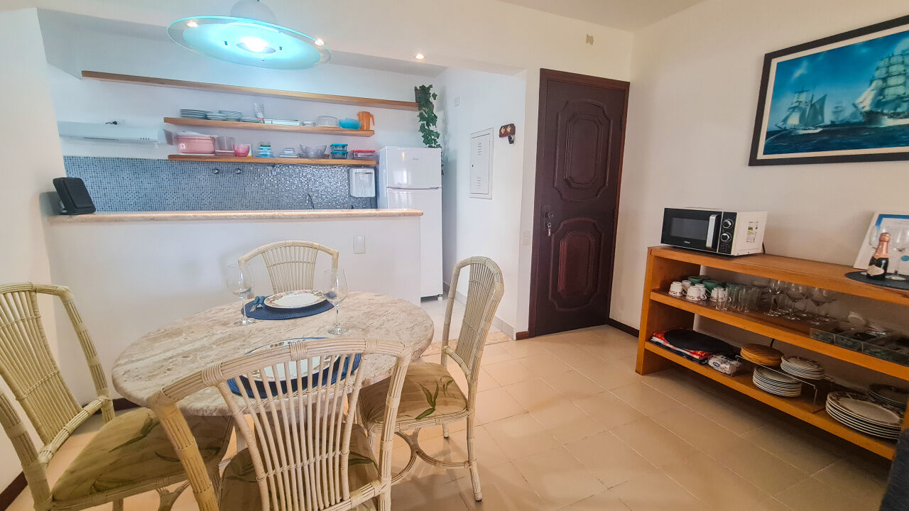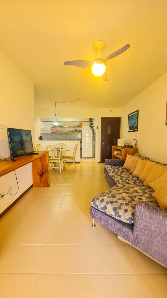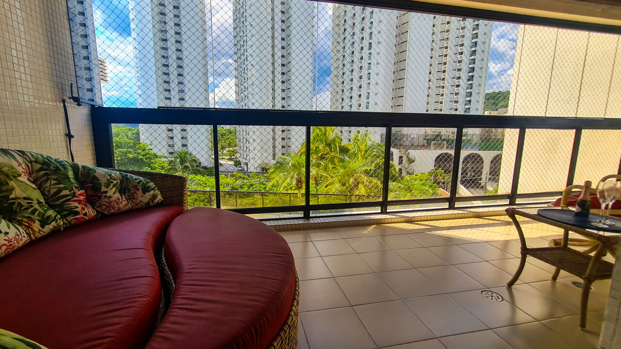 Apartamento no Condomínio Costão das Tartarugas na Praia da Enseada no Guarujá, com 2 dormitórios sendo 1 suíte, sala para 2 ambientes com varanda mobiliável, cozinha planejada, área de serviço e dependência de empregada reversível.