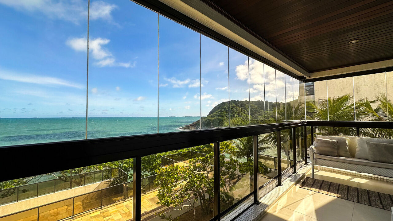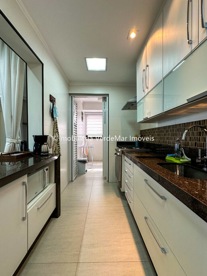Apartamento no Condomínio Costão das Tartarugas em Guarujá, vista para o Oceano, com 2 dormitórios sendo 1 suíte, sala para 2 ambientes com varanda envidraçada, cozinha planejada, área de serviço e dependência de empregada revertida.