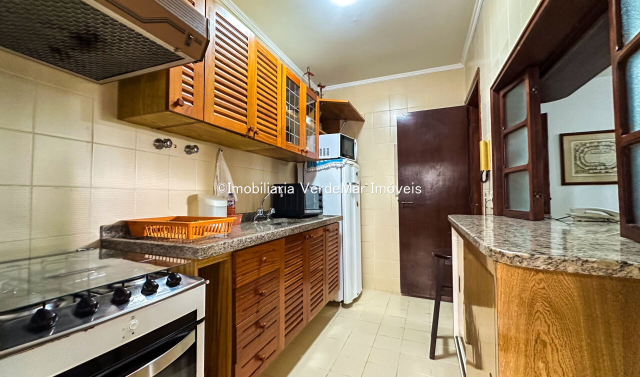 Apartamento no Condomínio Costão das Tartarugas em Guarujá, com 2 dormitórios sendo 1 suíte, sala para 2 ambientes com varanda, cozinha planejada, área de serviço e dependência de empregada.