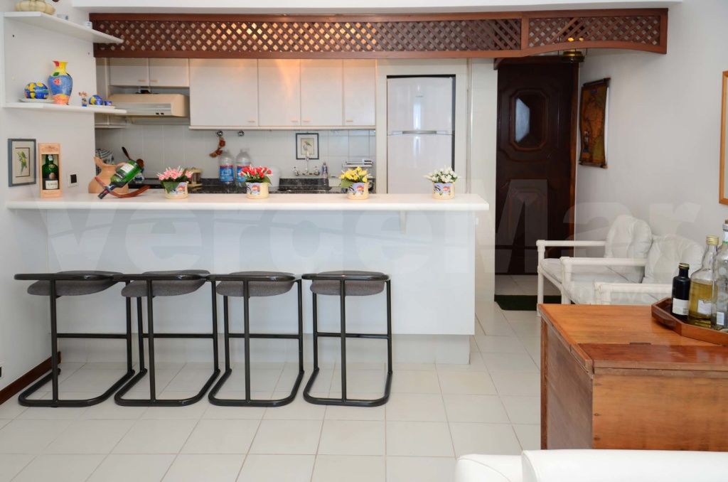 Apartamento no Condomínio Costão das Tartarugas na Praia da Enseada no Guarujá, vista oceano, com 2 dormitórios sendo 1 suíte, sala para 2 ambientes com varanda mobiliável, cozinha planejada, área de serviço e dependência de empregada reversível.