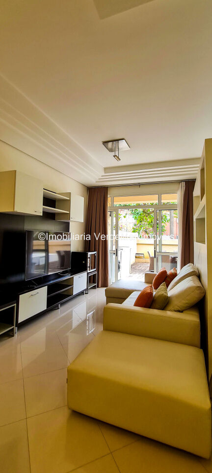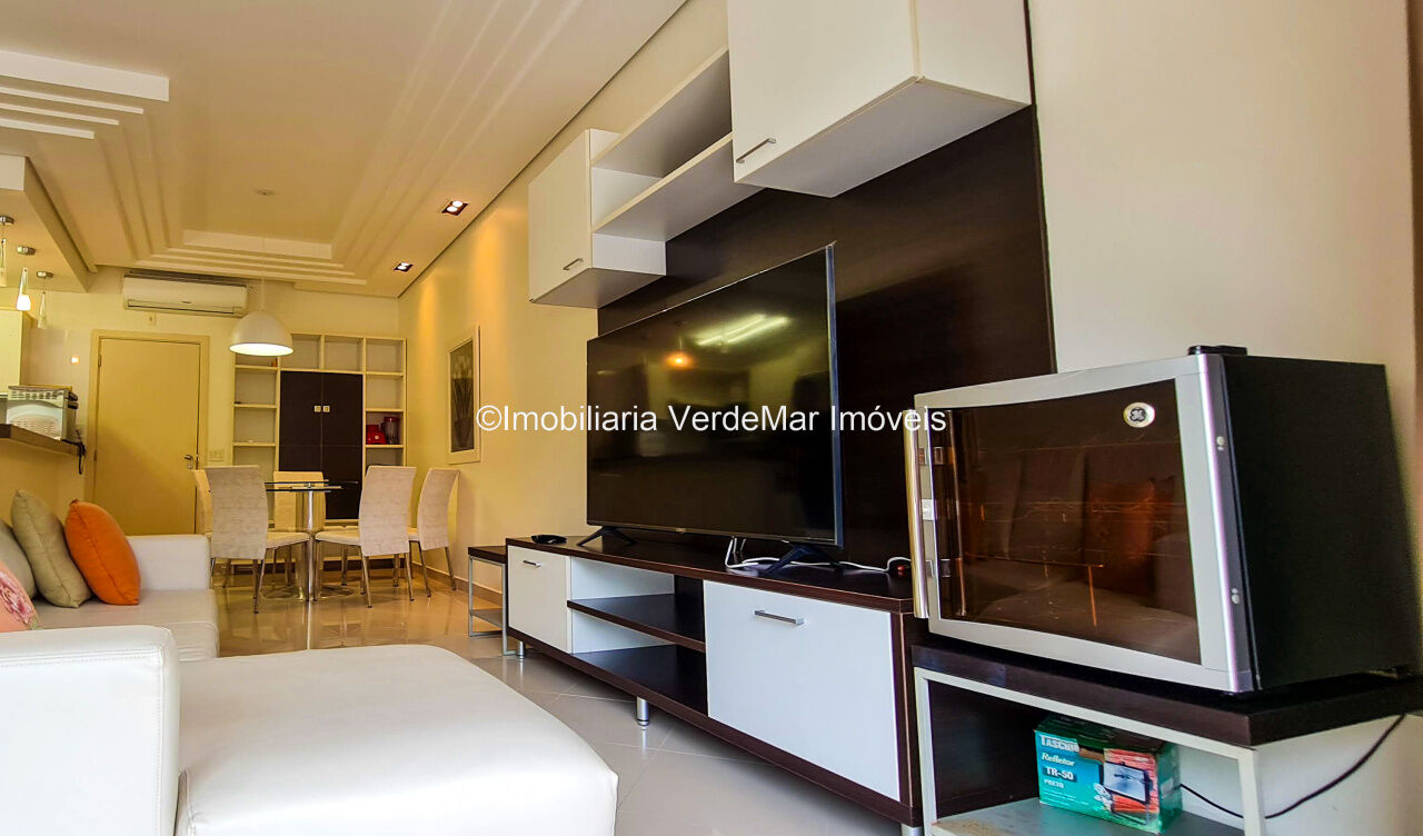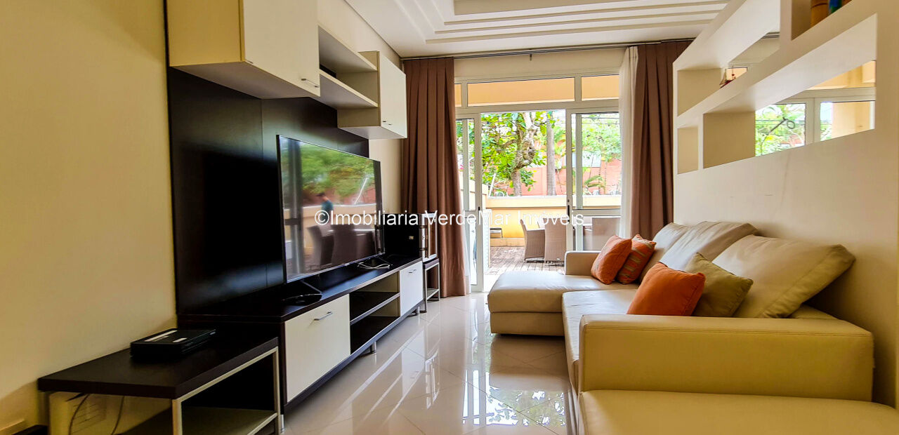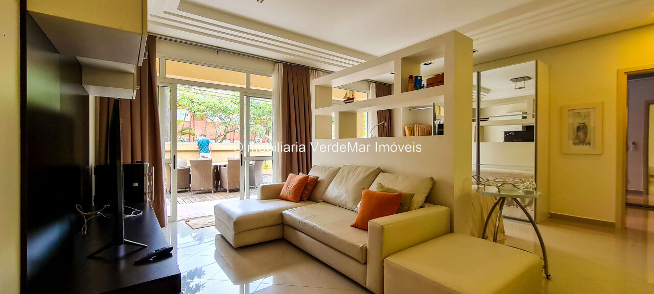 Apartamento no residencial Pantai frente a praia da Enseada em Guarujá, térreo, com 02 dormitórios sendo 1 suíte, sala para 2 ambientes com varanda mobiliavel, ar condicionado em todos os cômodos e cozinha planejada.