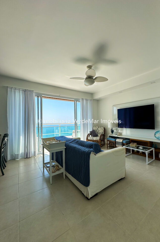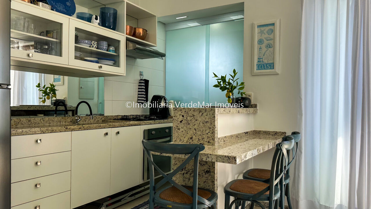 Penhasco das Tartarugas, apartamento DECORADO à venda na praia da Enseada em Guarujá, com 02 suítes, sala para 02 ambientes com sacada, lavabo, ar condicionado, cozinha americana e lavanderia.
