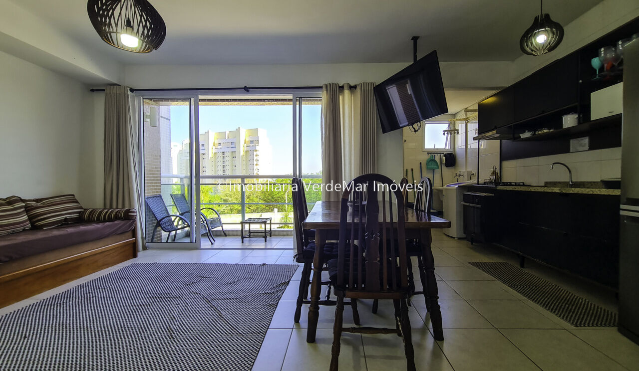 Penhasco das Tartarugas, apartamento à venda na praia da Enseada em Guarujá, com 02 suítes, sala para 02 ambientes com sacada, lavabo, ar condicionado, cozinha americana e lavanderia.