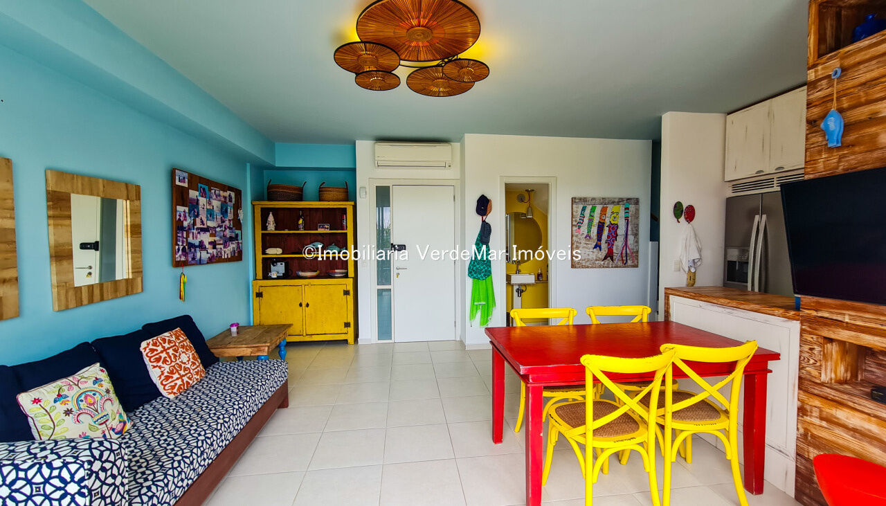 Penhasco das Tartarugas, apartamento a venda na praia da Enseada em Guarujá, mobiliado e decorado com 02 suítes, sala para 02 ambientes com sacada, lavabo,ar condicionado, cozinha americana e lavanderia.