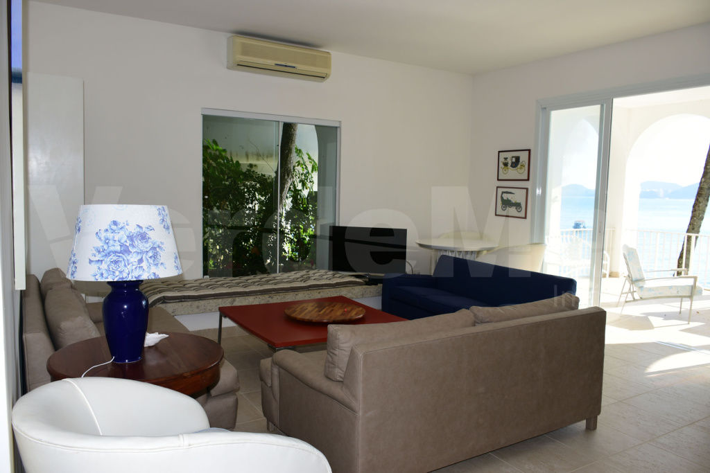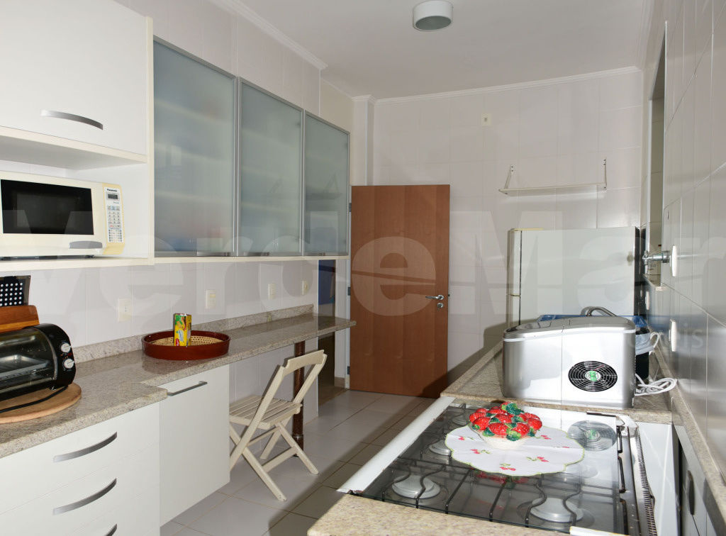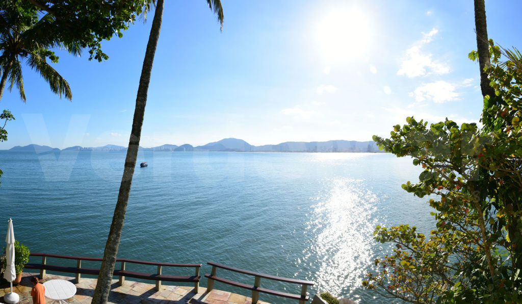 Apartamento no condomínio Península em Guarujá, com vista ao mar, 2 suítes, sala 2 ambientes com terraço mobiliado, lavabo, sala de TV, cozinha planejada, depósito e lavanderia coletiva.