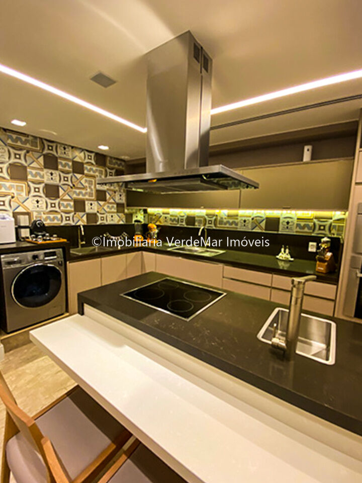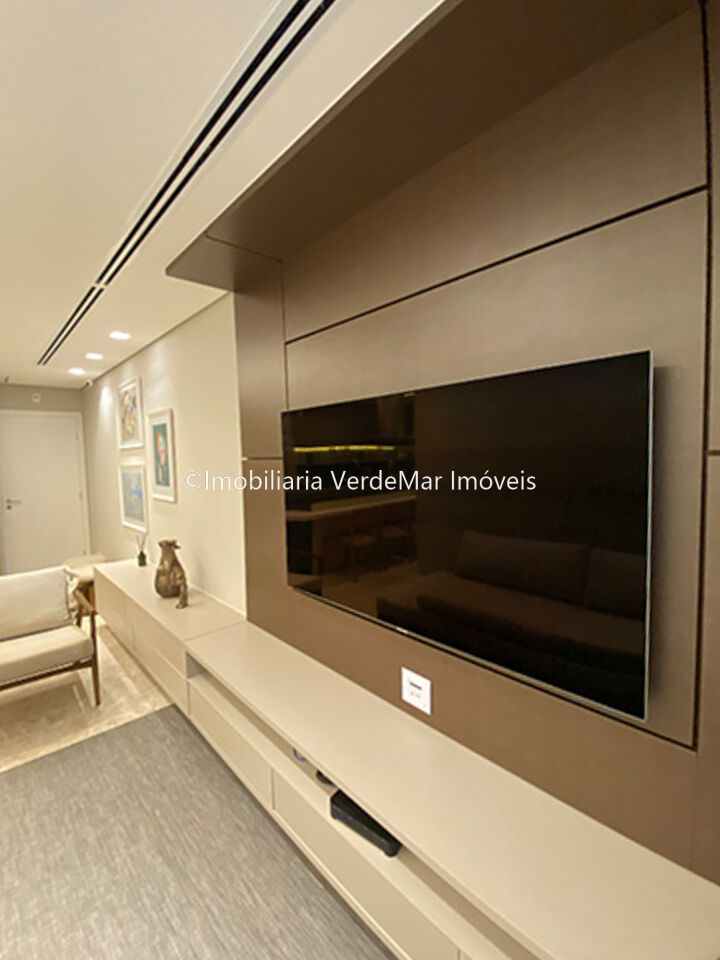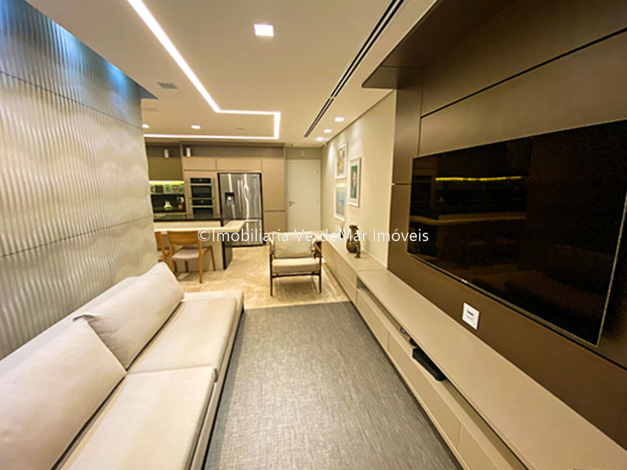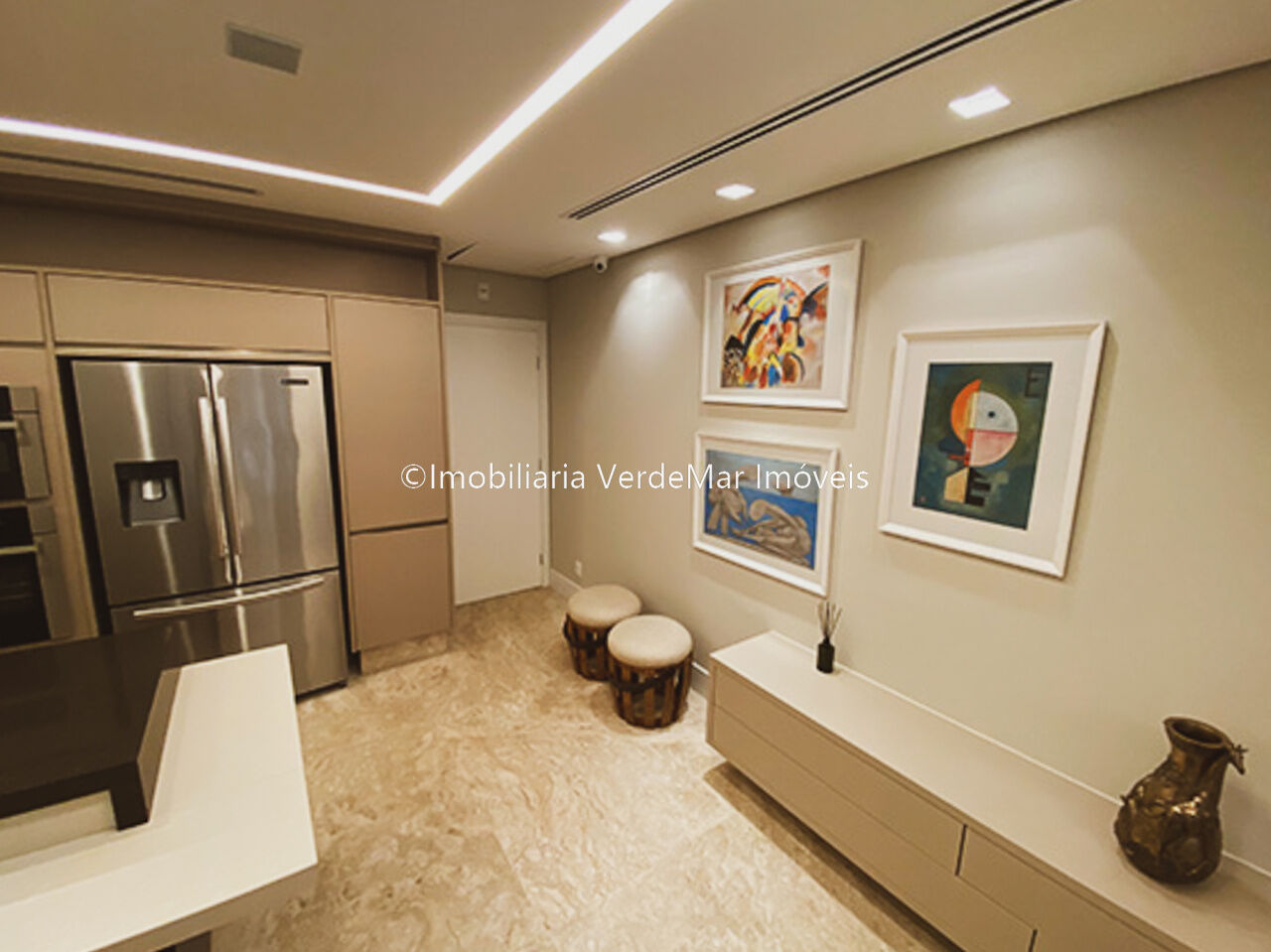 Apartamento DECORADO À VENDA em condomínio frente a praia da Enseada em Guarujá, mobiliado, com 03 dormitórios sendo 1 suíte, sala para 2 ambientes com varanda, cozinha americana planejada com ilha e lavanderia