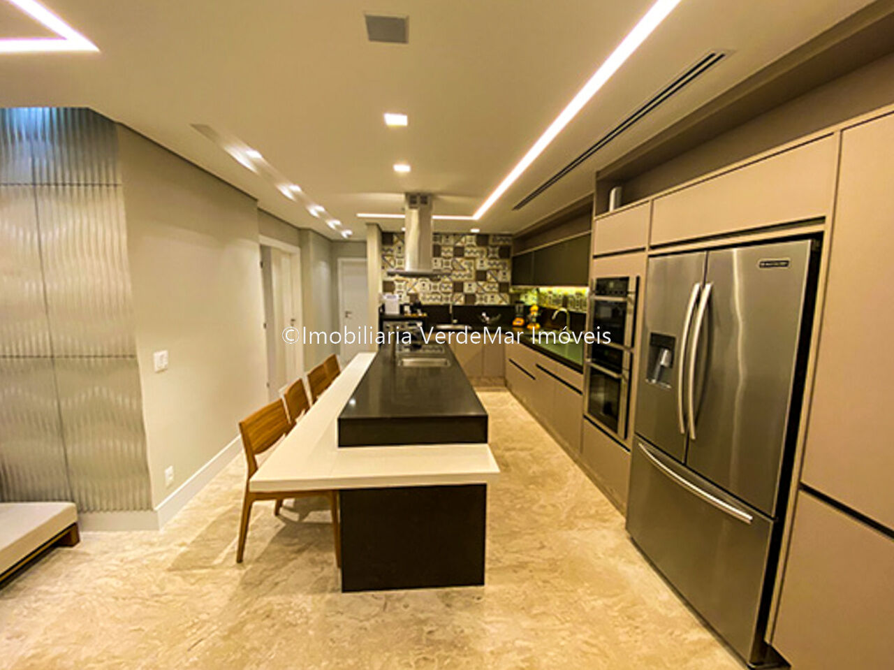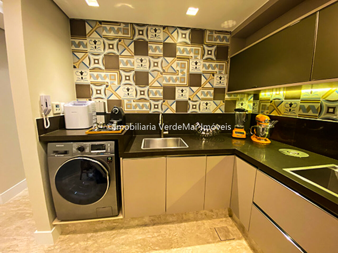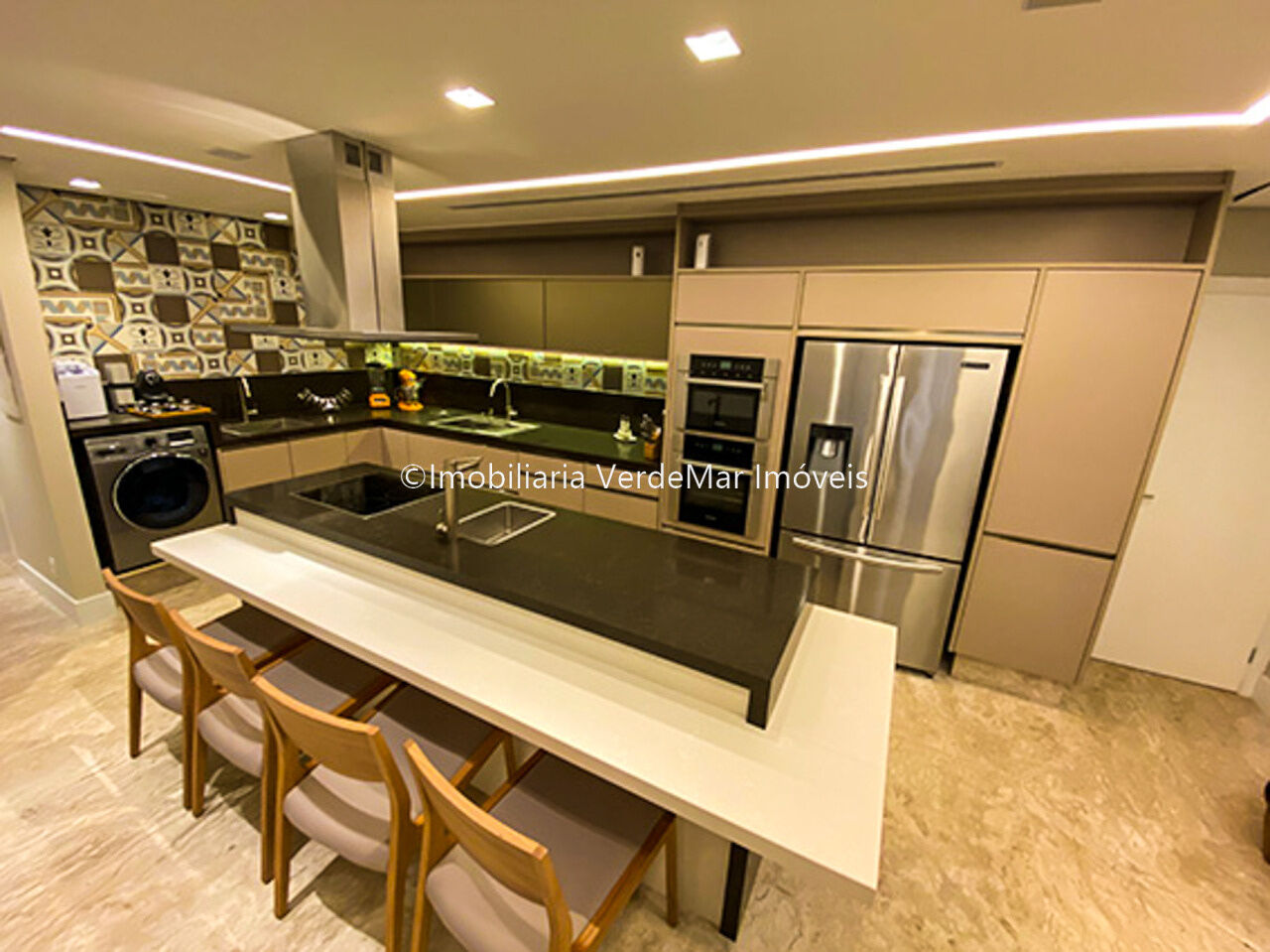 Apartamento DECORADO À VENDA em condomínio frente a praia da Enseada em Guarujá, mobiliado, com 03 dormitórios sendo 1 suíte, sala para 2 ambientes com varanda, cozinha americana planejada com ilha e lavanderia