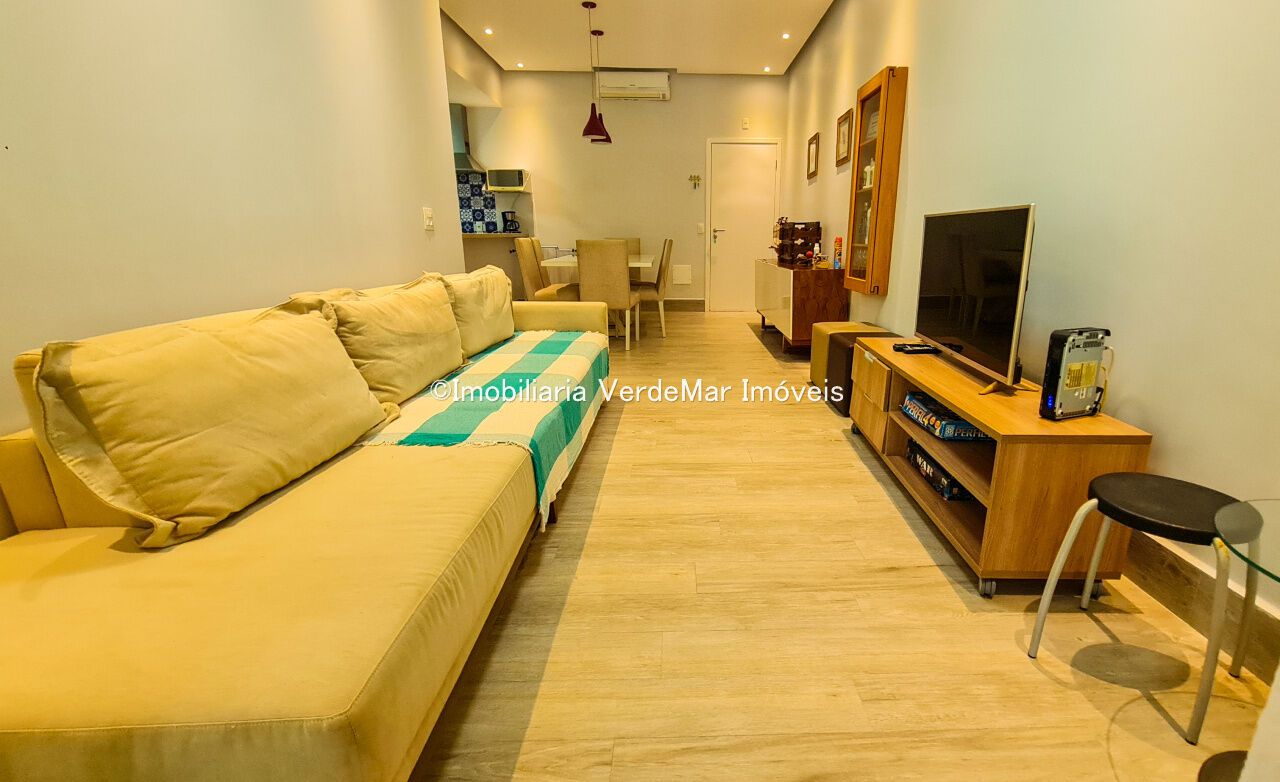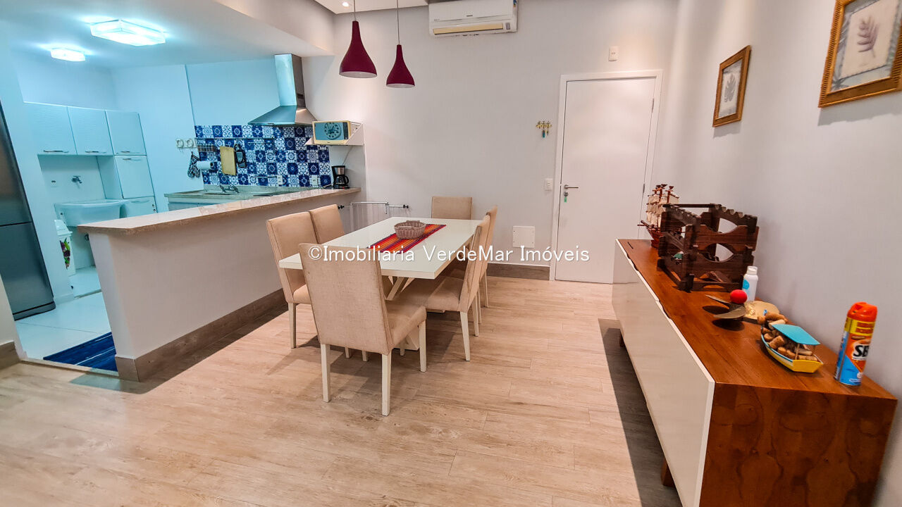 Apartamento À VENDA em condomínio frente a praia da Enseada em Guarujá, mobiliado, com 03 dormitórios sendo 1 suíte, sala para 2 ambientes com varanda, cozinha americana e lavanderia