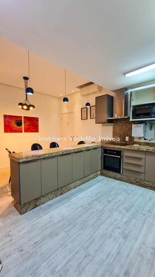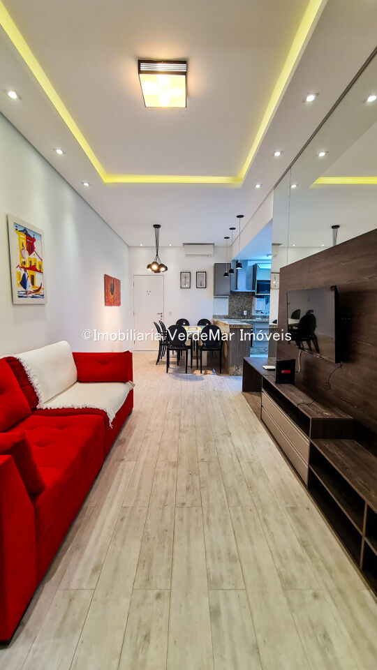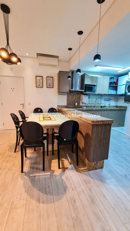Apartamento frente a praia da Enseada em Guarujá, mobiliado e decorado com 02 dormitórios sendo 1 suíte, sala para 2 ambientes com varanda, cozinha americana.