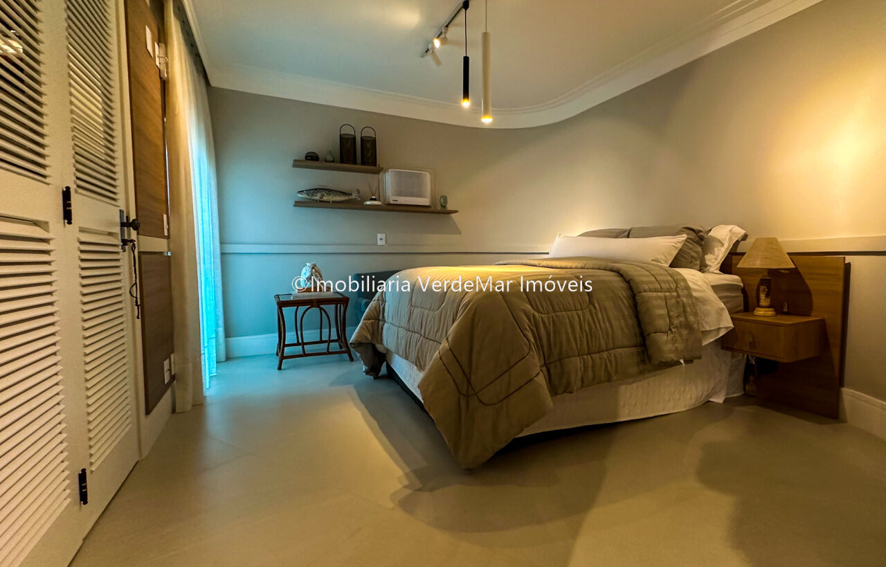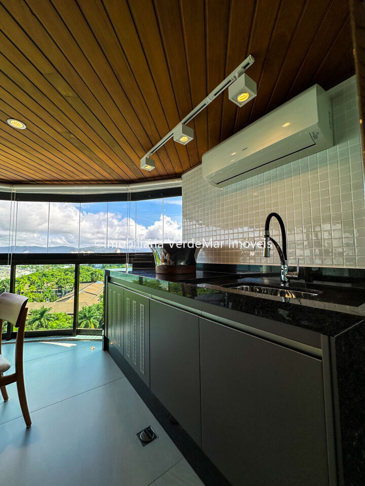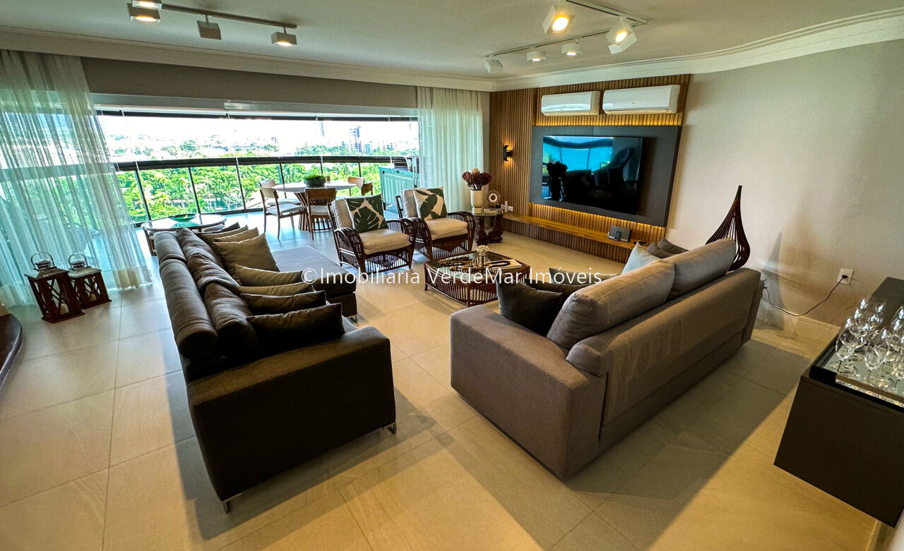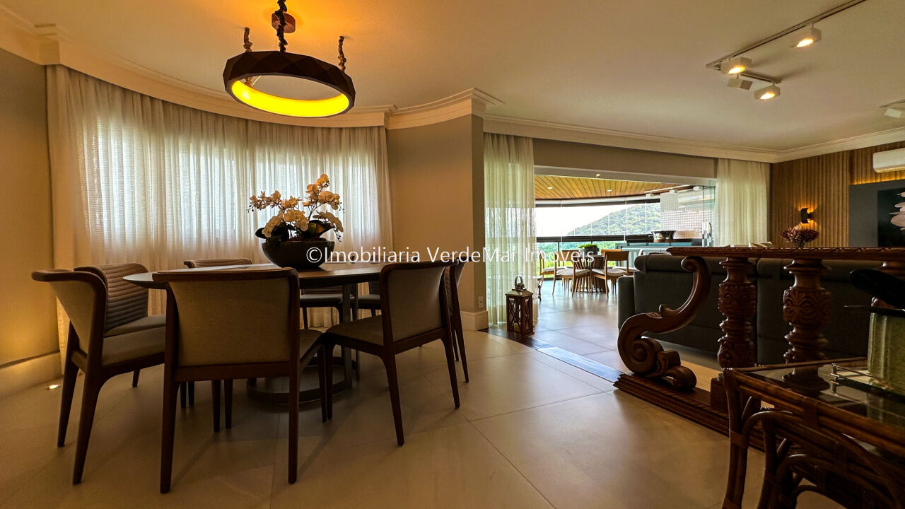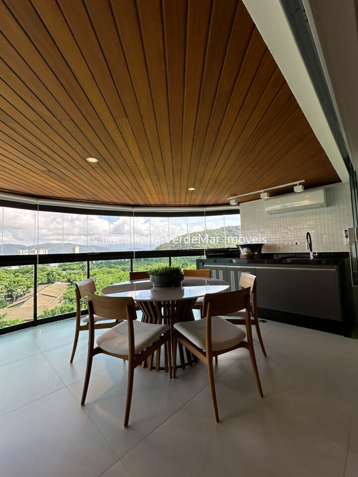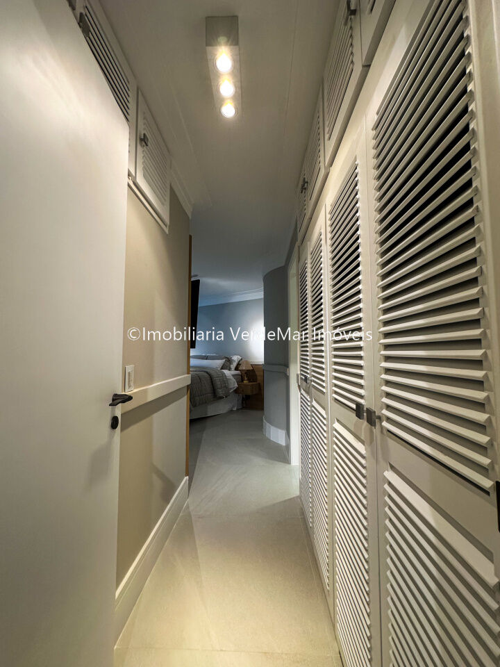 Apartamento decorado à venda no condomínio Tortugas na praia da Enseada no Guarujá, vista mar, com 4 suítes sendo a máster com closet, sala para 3 ambientes com sacada, copa, cozinha planejada e dependência de empregada reversível.
