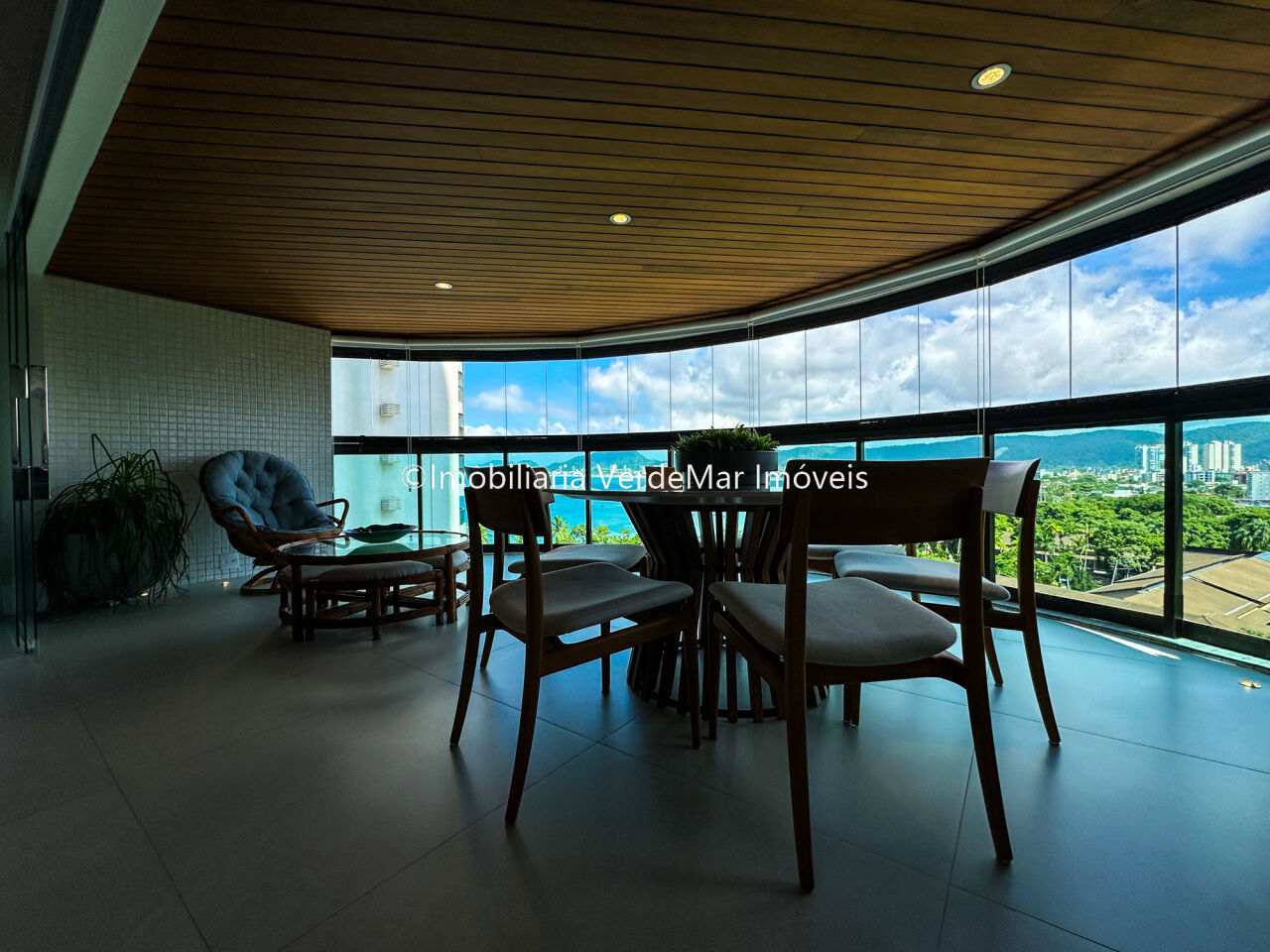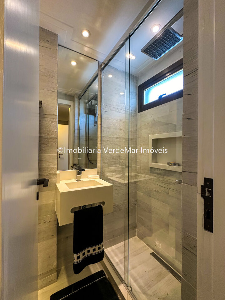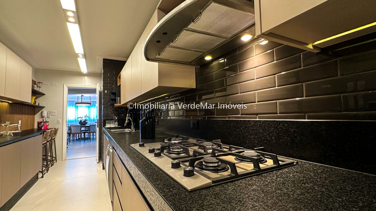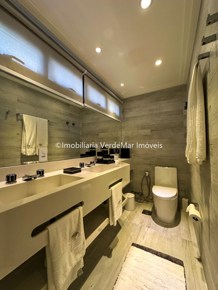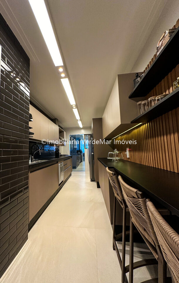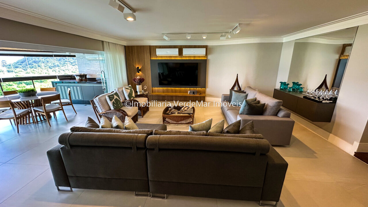 Apartamento decorado à venda no condomínio Tortugas na praia da Enseada no Guarujá, vista mar, com 4 suítes sendo a máster com closet, sala para 3 ambientes com sacada, copa, cozinha planejada e dependência de empregada reversível.
