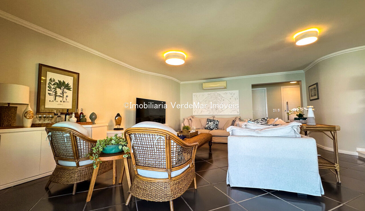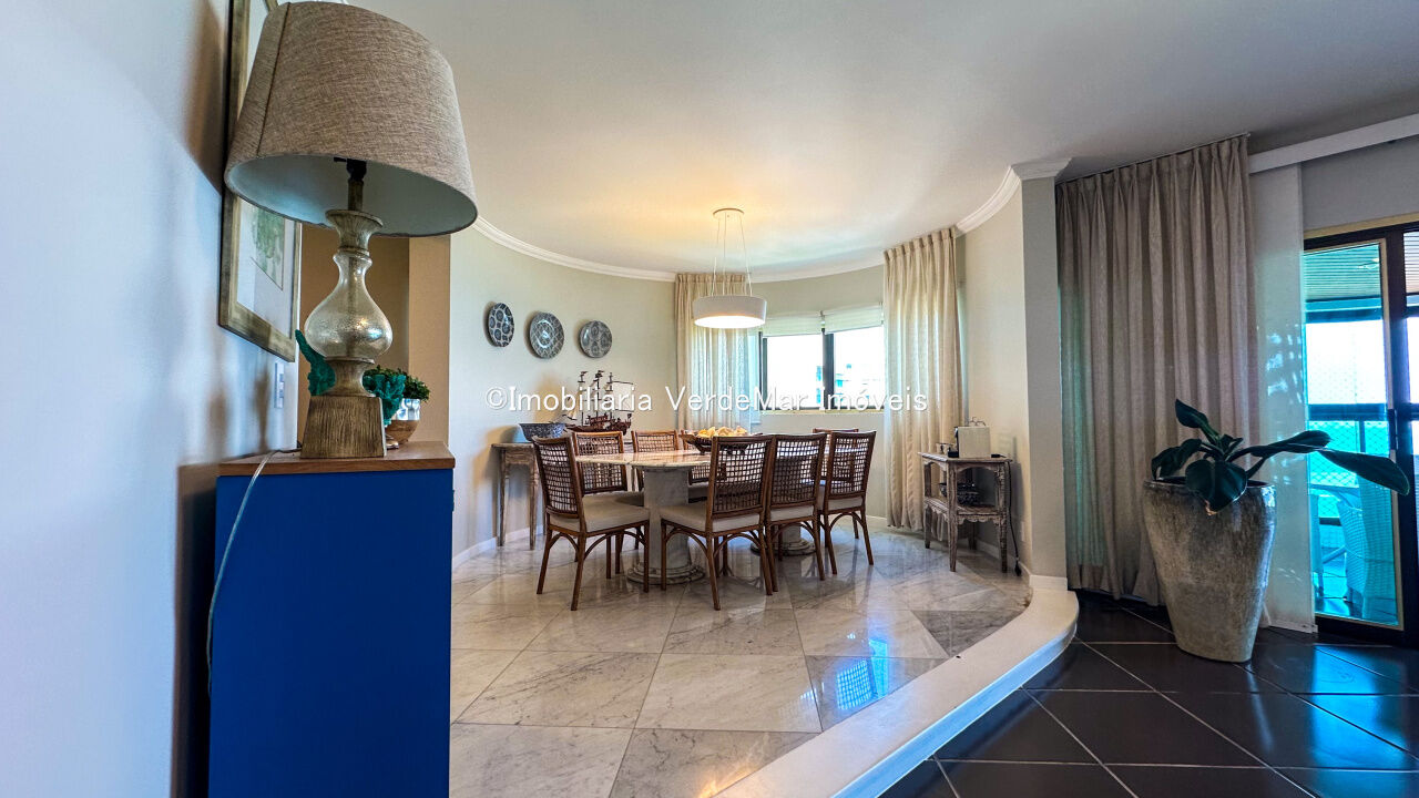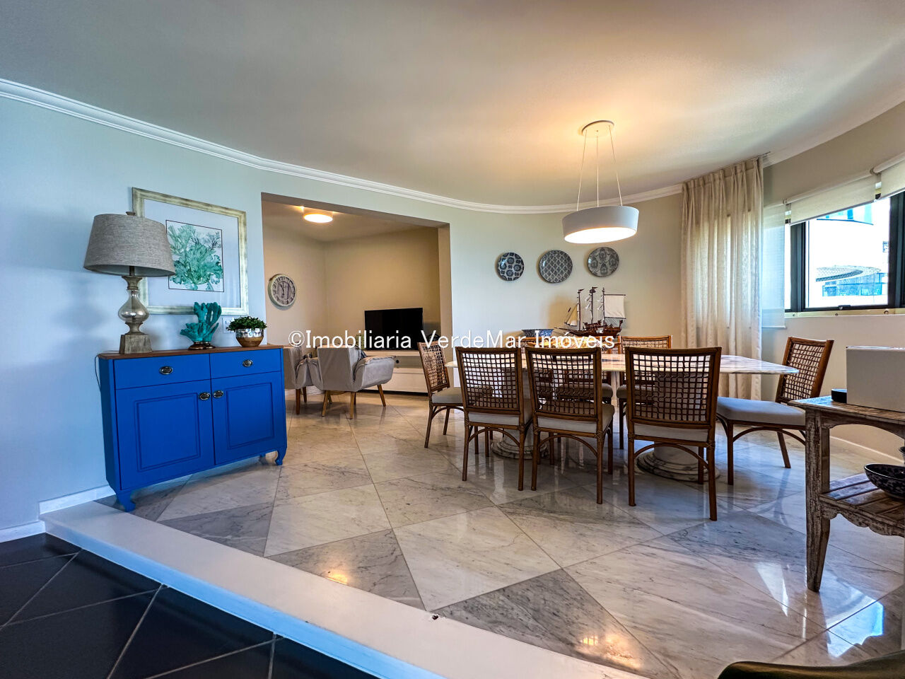 Apartamento reformado à venda no condomínio Tortugas na praia da Enseada no Guarujá, vista mar, com 4 suítes sendo a máster com closet, sala para 3 ambientes com sacada, copa, cozinha planejada e dependência de empregada reversível.