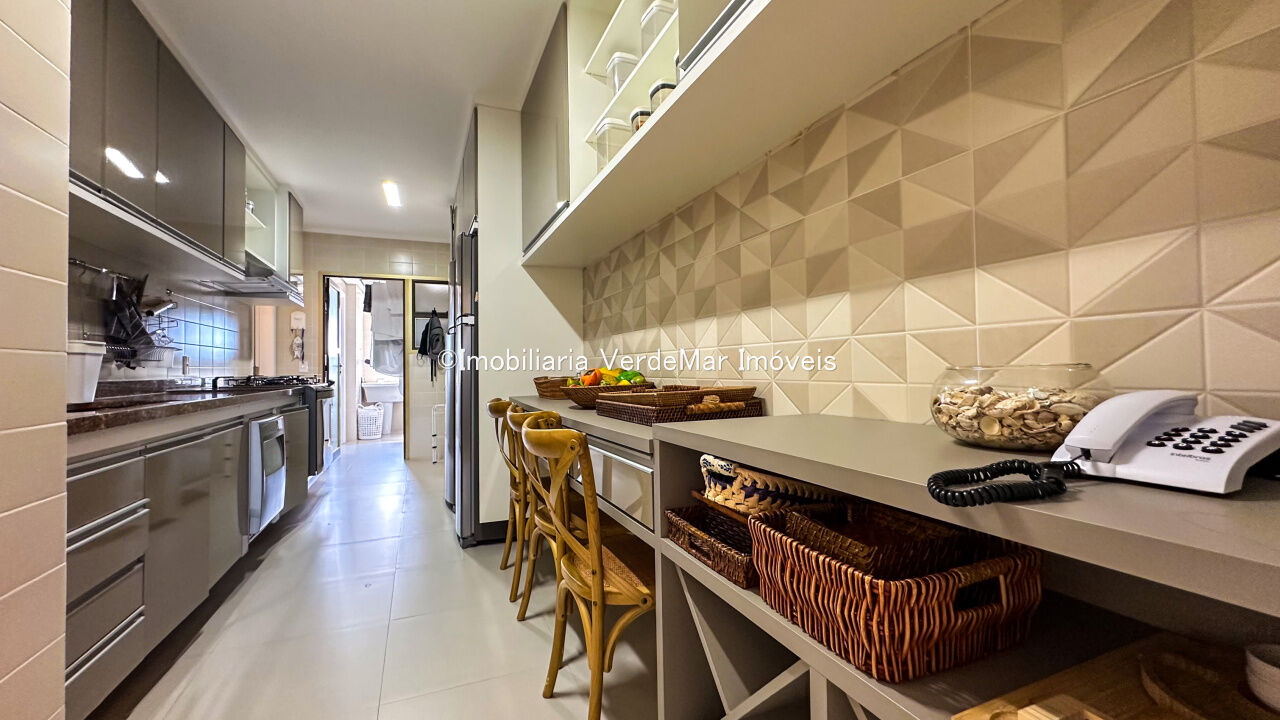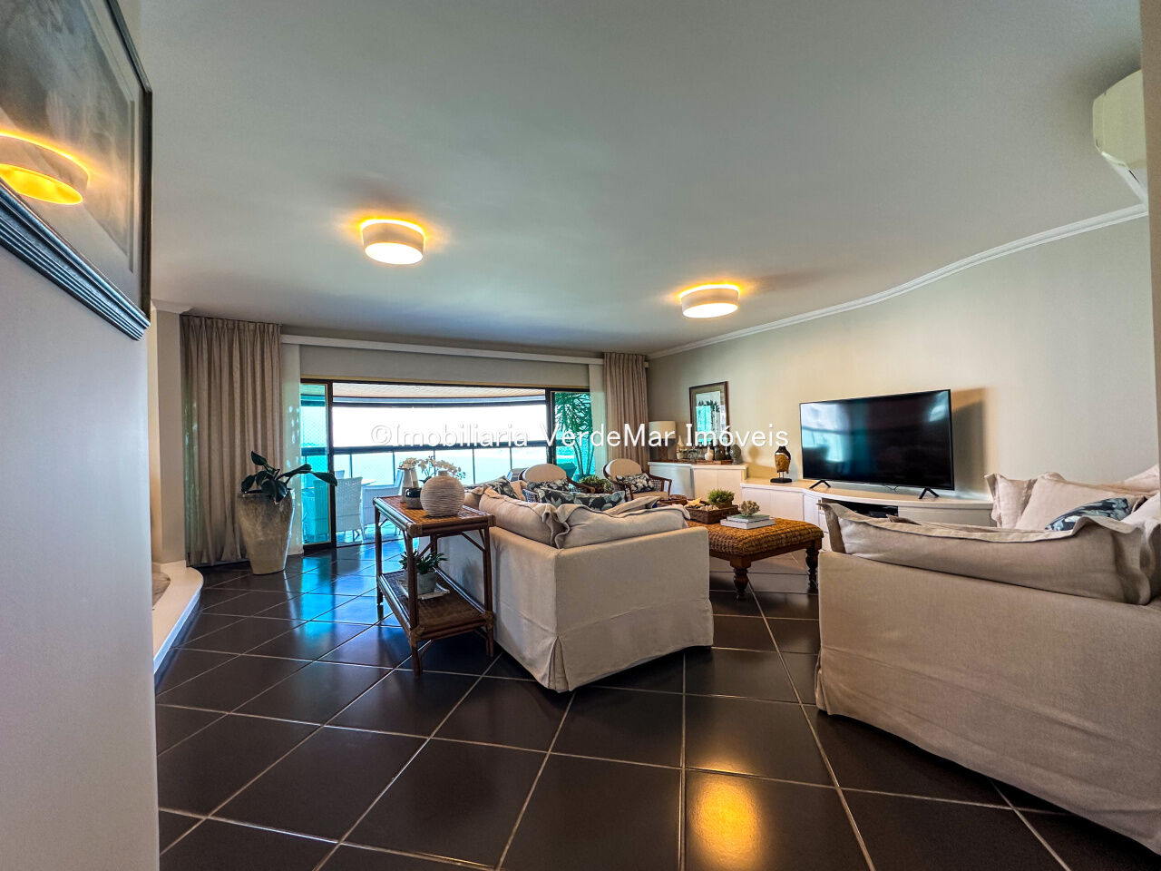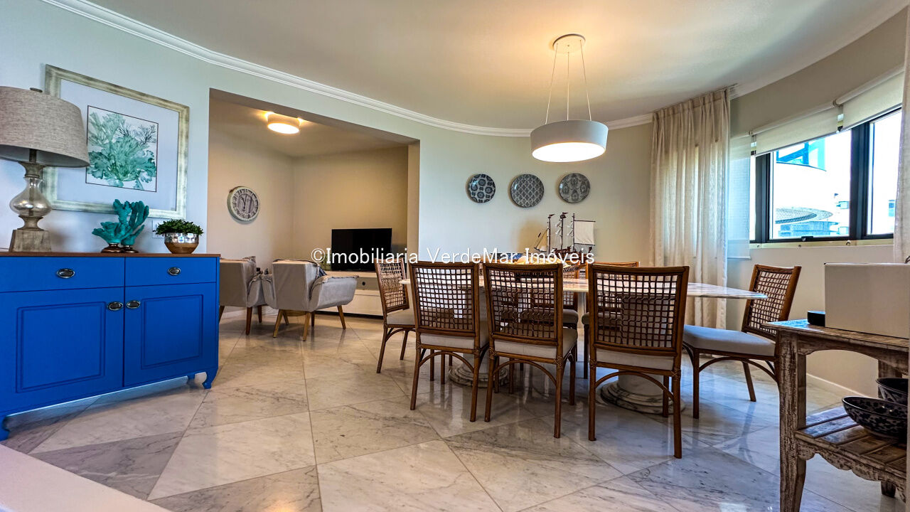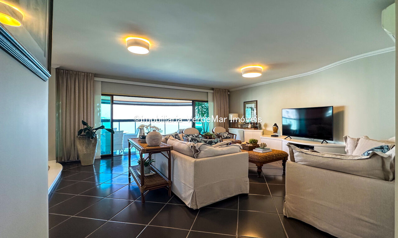 Apartamento reformado à venda no condomínio Tortugas na praia da Enseada no Guarujá, vista mar, com 4 suítes sendo a máster com closet, sala para 3 ambientes com sacada, copa, cozinha planejada e dependência de empregada reversível.