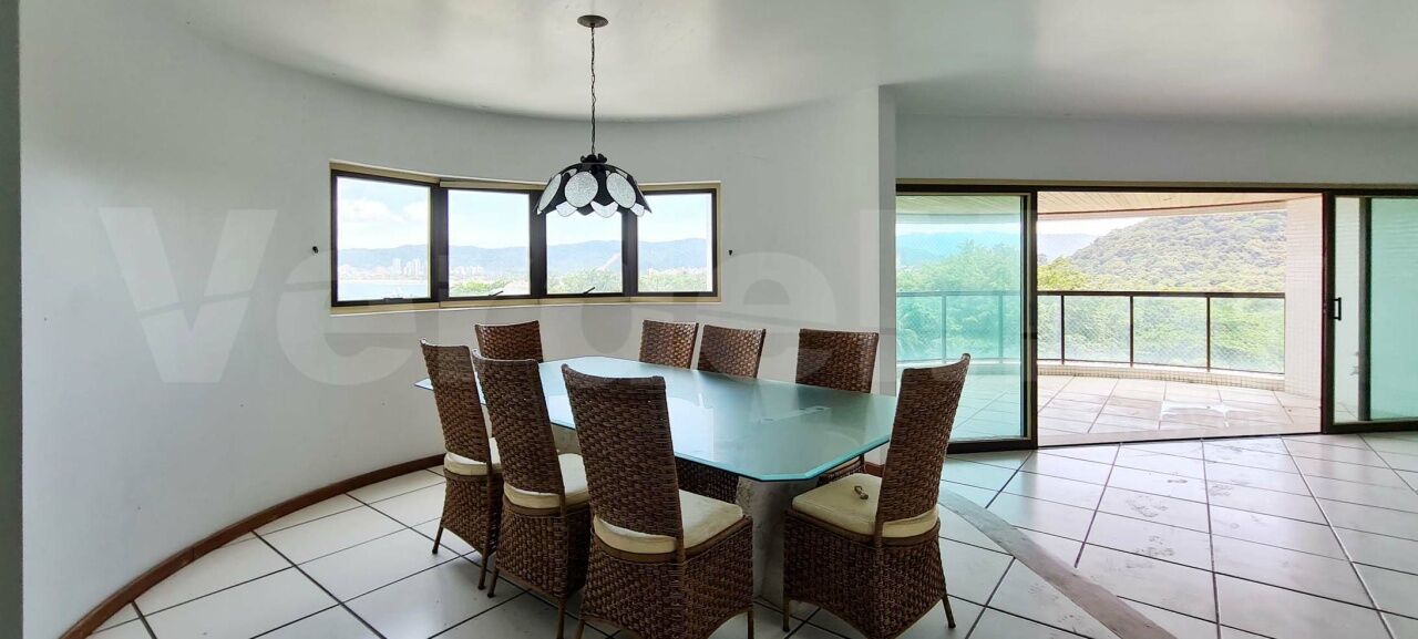 Apartamento no condomínio Tortugas na praia da Enseada em Guarujá, com 3 suítes sendo a máster com closet e hidromassagem, sala para 3 ambientes com lavabo e terraço gourmet, copa, cozinha planejada e área de serviço.