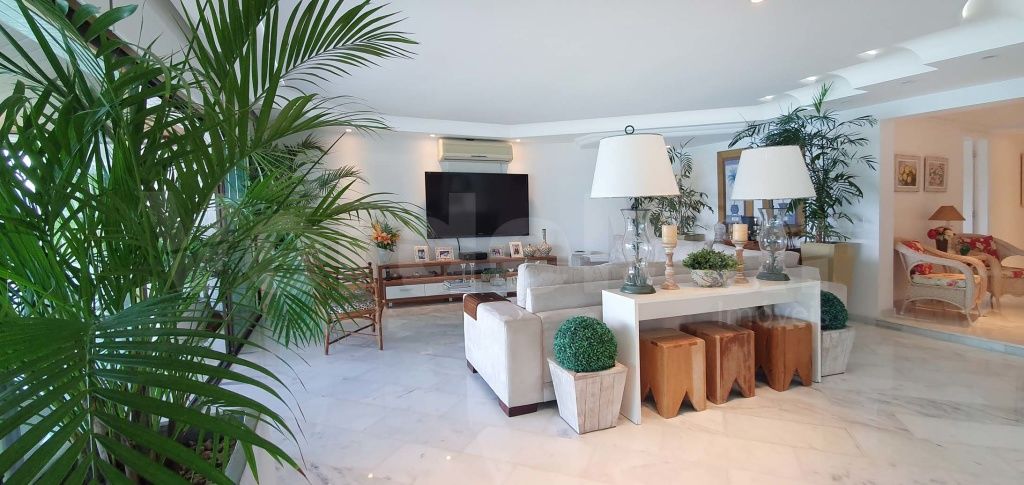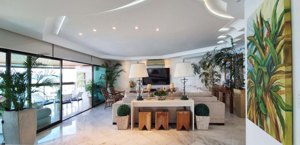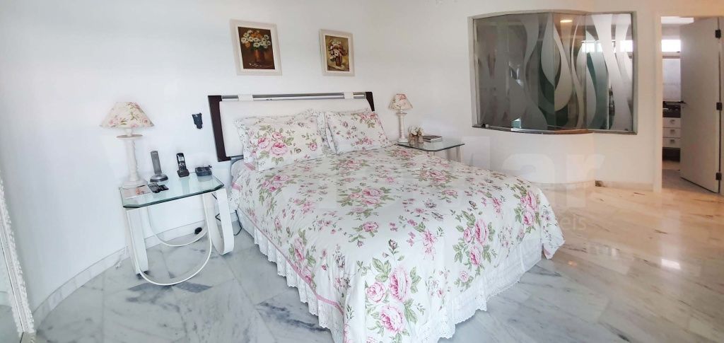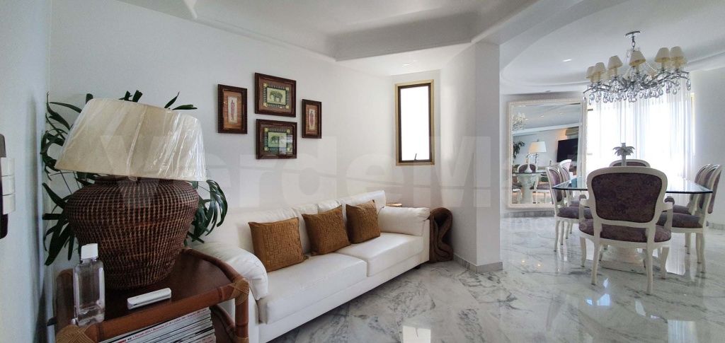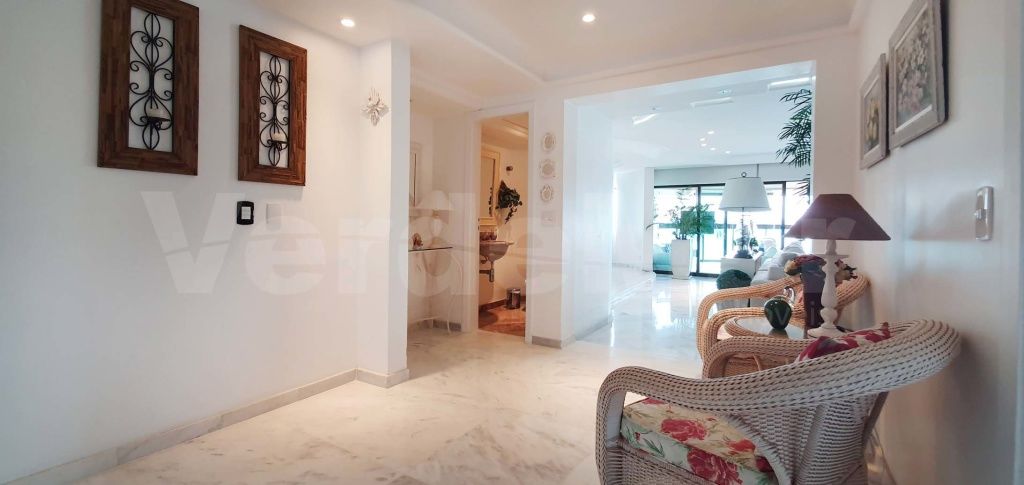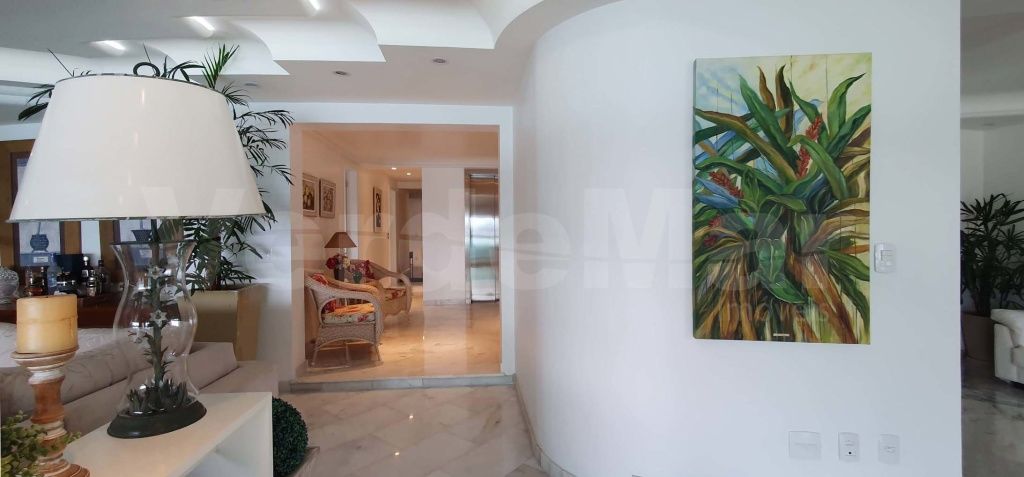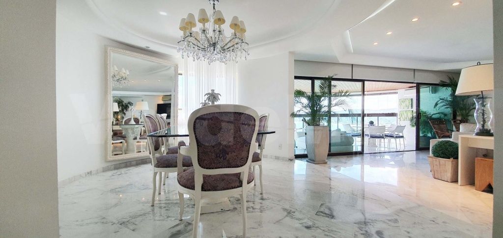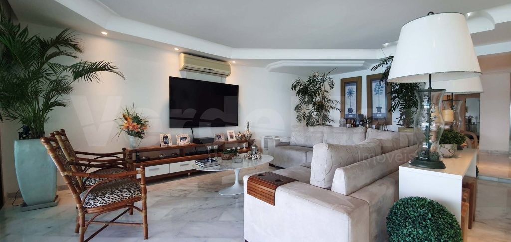 Apartamento mobilíado a venda no condomínio Tortugas na praia da Enseada no Guarujá, com 4 suítes sendo a master com hidromassagem, sala para 4 ambientes com sacada envidraçada, copa, cozinha planejada e lavanderia.