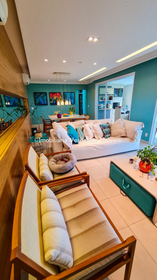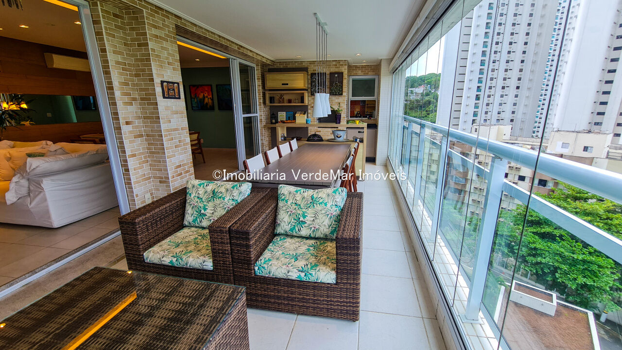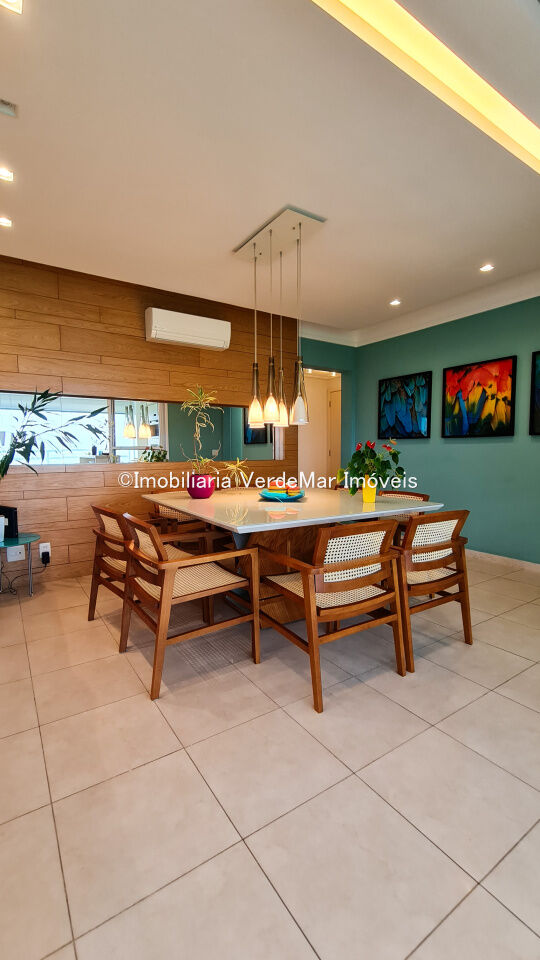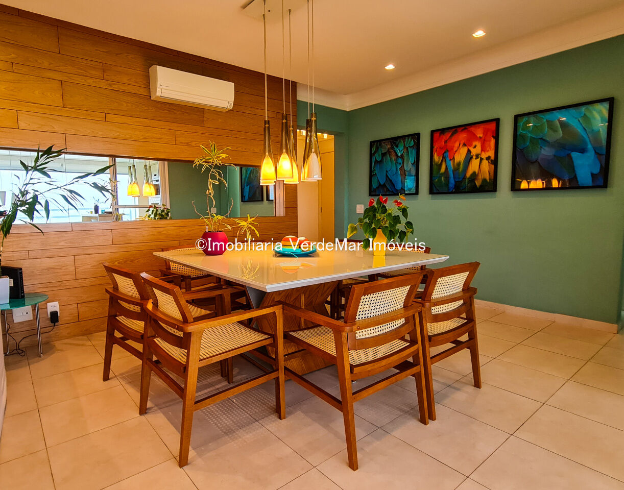 Condomínio Verde Mar na praia da Enseada em Guarujá, apartamento impecávelmente mobilido e e decorado por aquitetos, com 04 suítes, sala para 02 ambientes, cozinha, lavanderia, dependência de empregada e amplo terraço gourmet com churrasqueira.