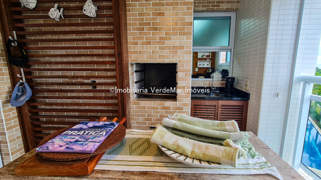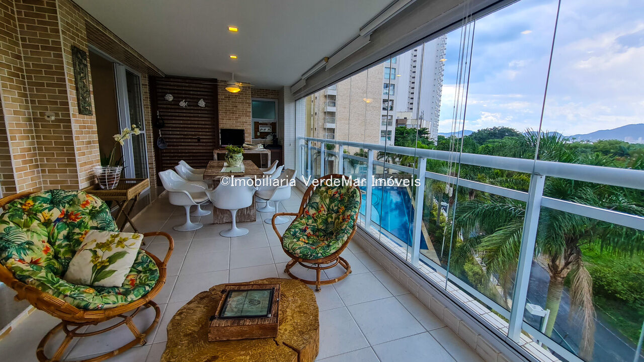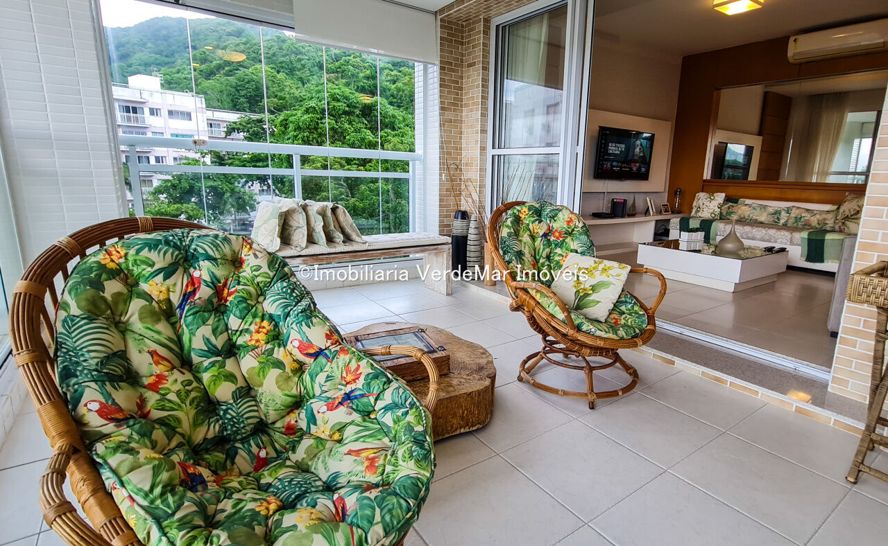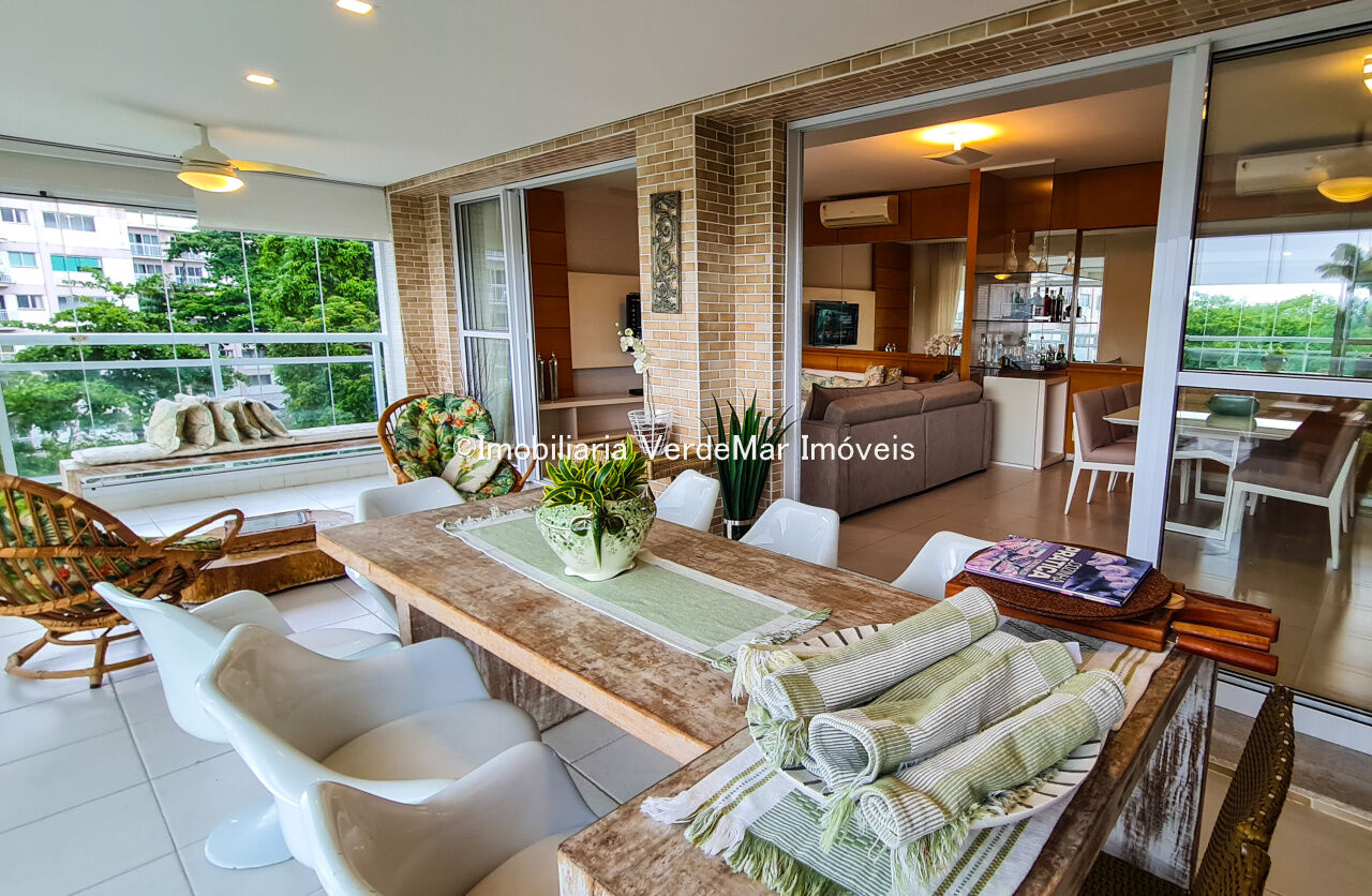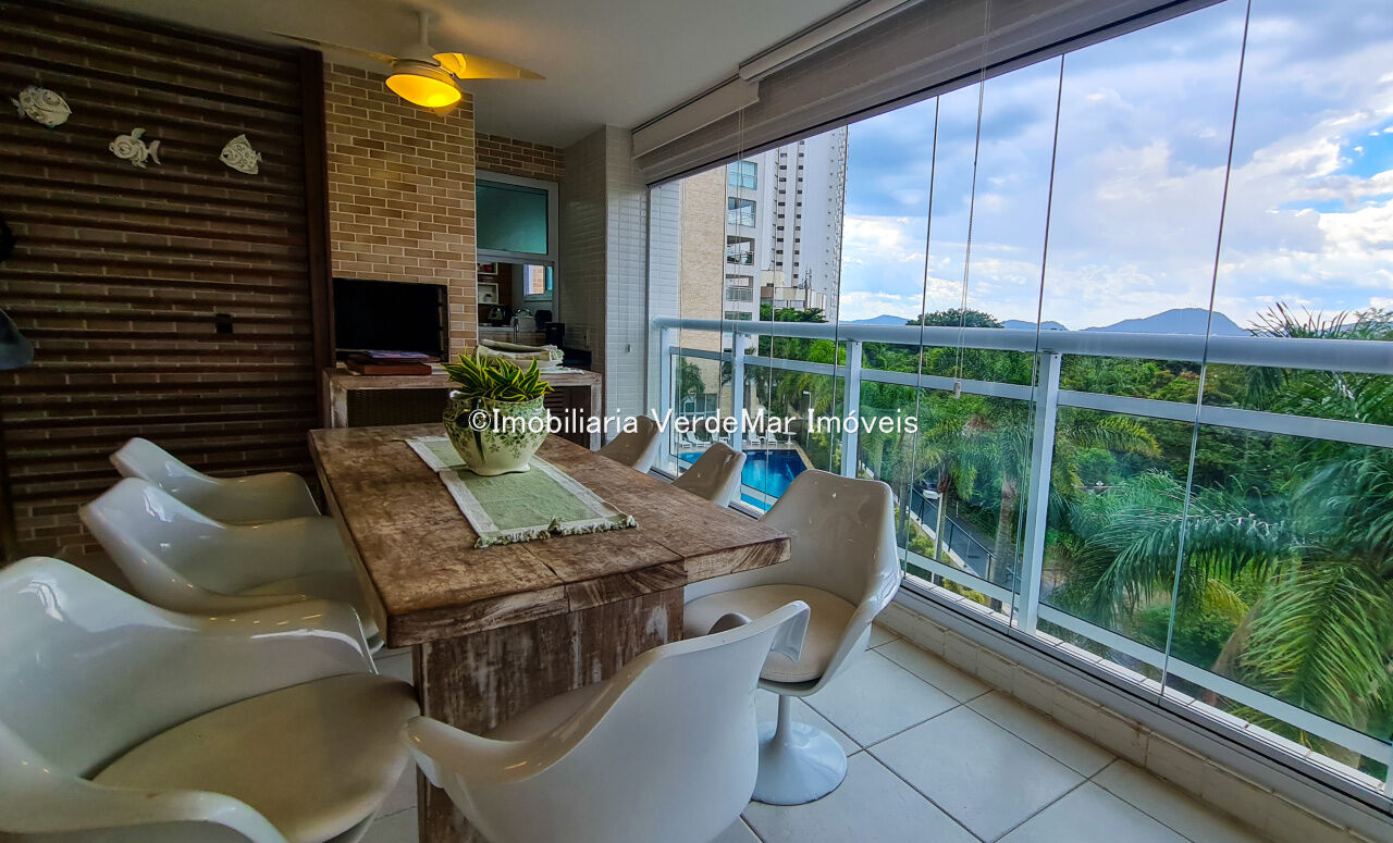 Apartamento a 150 metros da praia da Enseada em Guarujá com vista para o mar, 03 suítes, sala para 02 ambientes, cozinha, lavanderia, dependência de empregada e amplo terraço gourmet com churrasqueira.