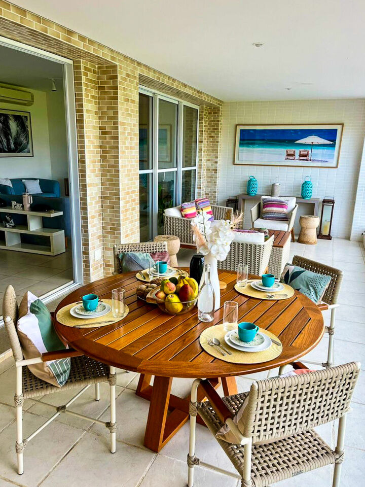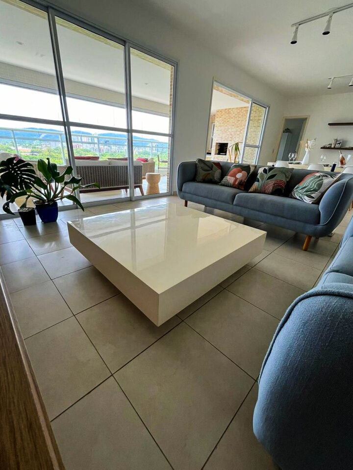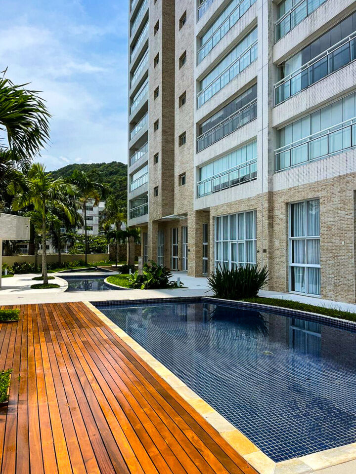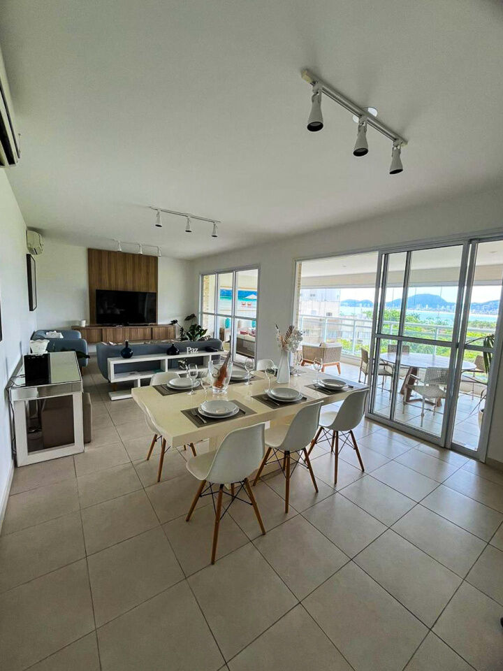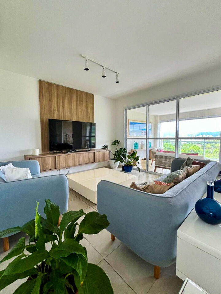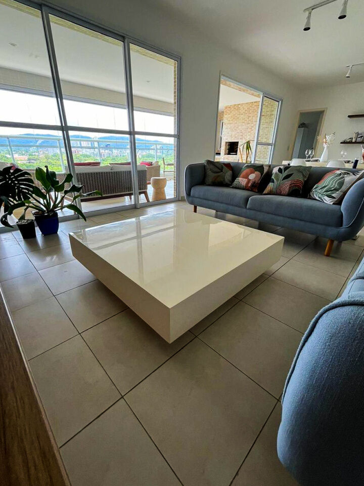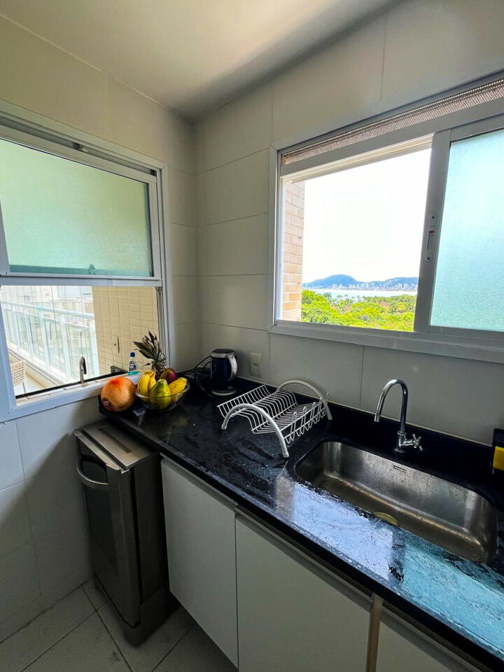 Apartamento a 150 metros da praia da Enseada em Guarujá com vista para o mar, 03 suítes, sala para 02 ambientes, cozinha, lavanderia, dependência de empregada e amplo terraço gourmet com churrasqueira.