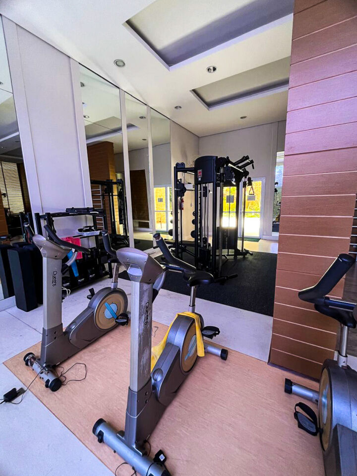 Lazer do condomínio com fitness center, spa, piscinas com bar, espaço zen com bangalô de massagem, sauna com sala de descanso, quadra recreativa, brinquedoteca, playground, espaço e terraço gourmet, churrasqueira, forno de pizza além de bosque preservado com a mata nativa.