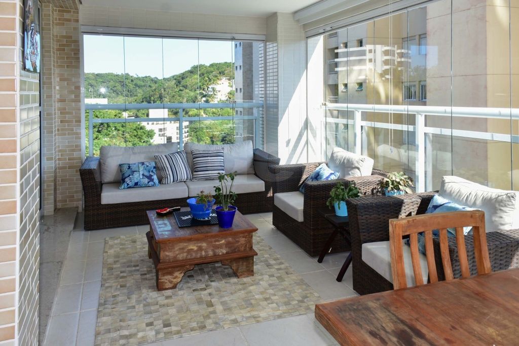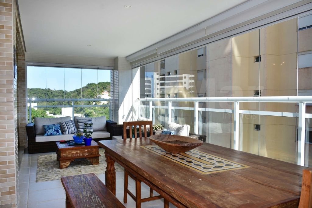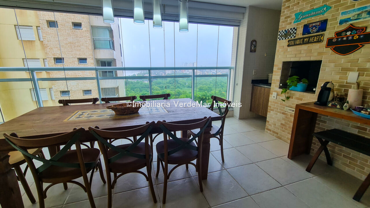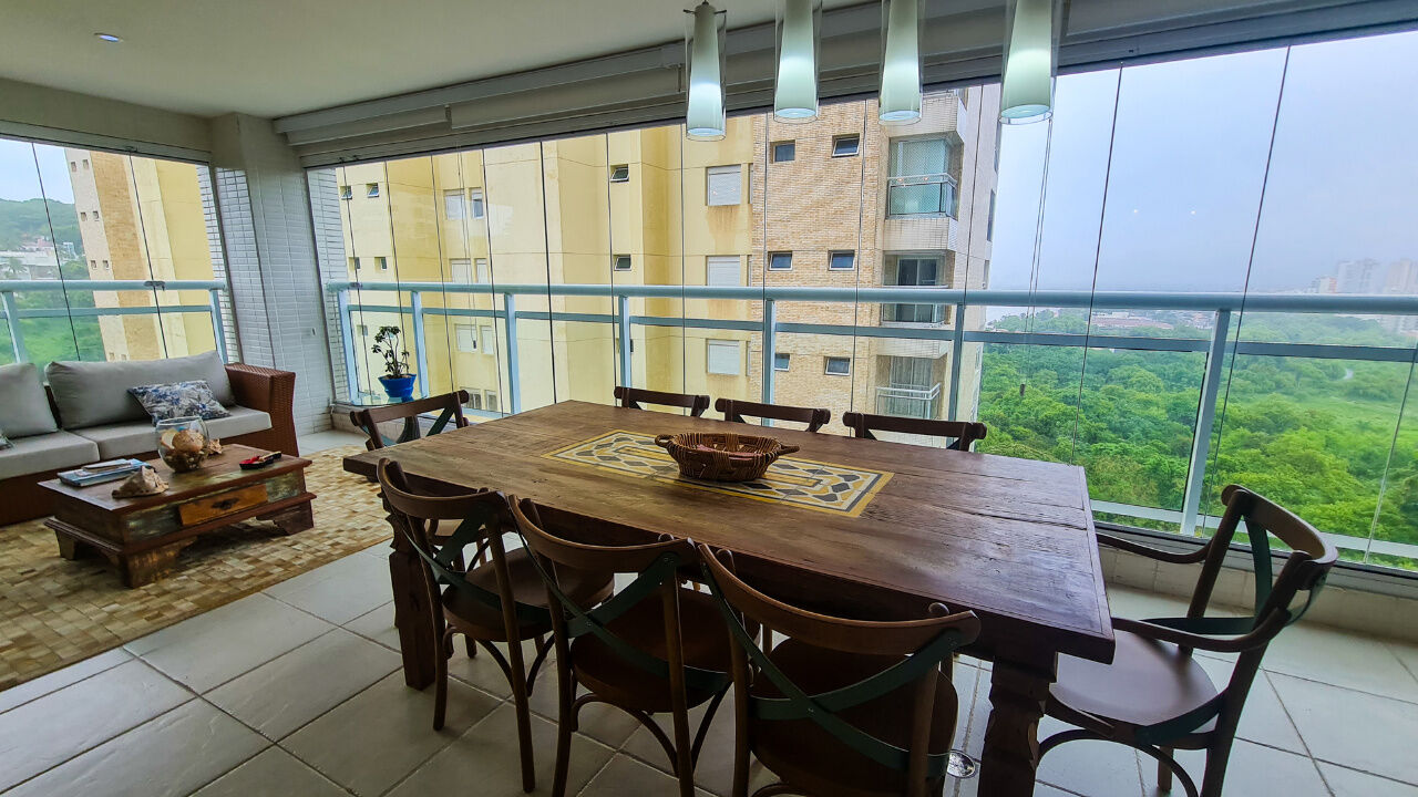 Apartamento a 150 metros da praia da Enseada em Guarujá com vista para o mar, 03 suítes, sala para 02 ambientes, cozinha, lavanderia, dependência de empregada e amplo terraço gourmet com churrasqueira.