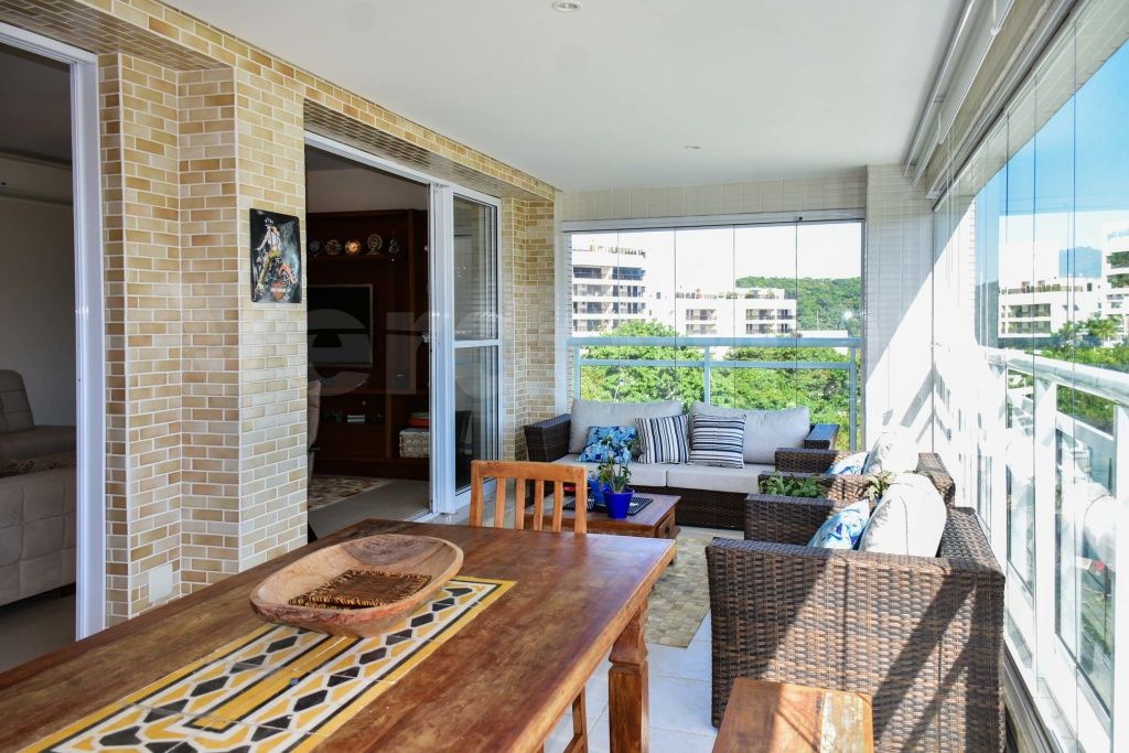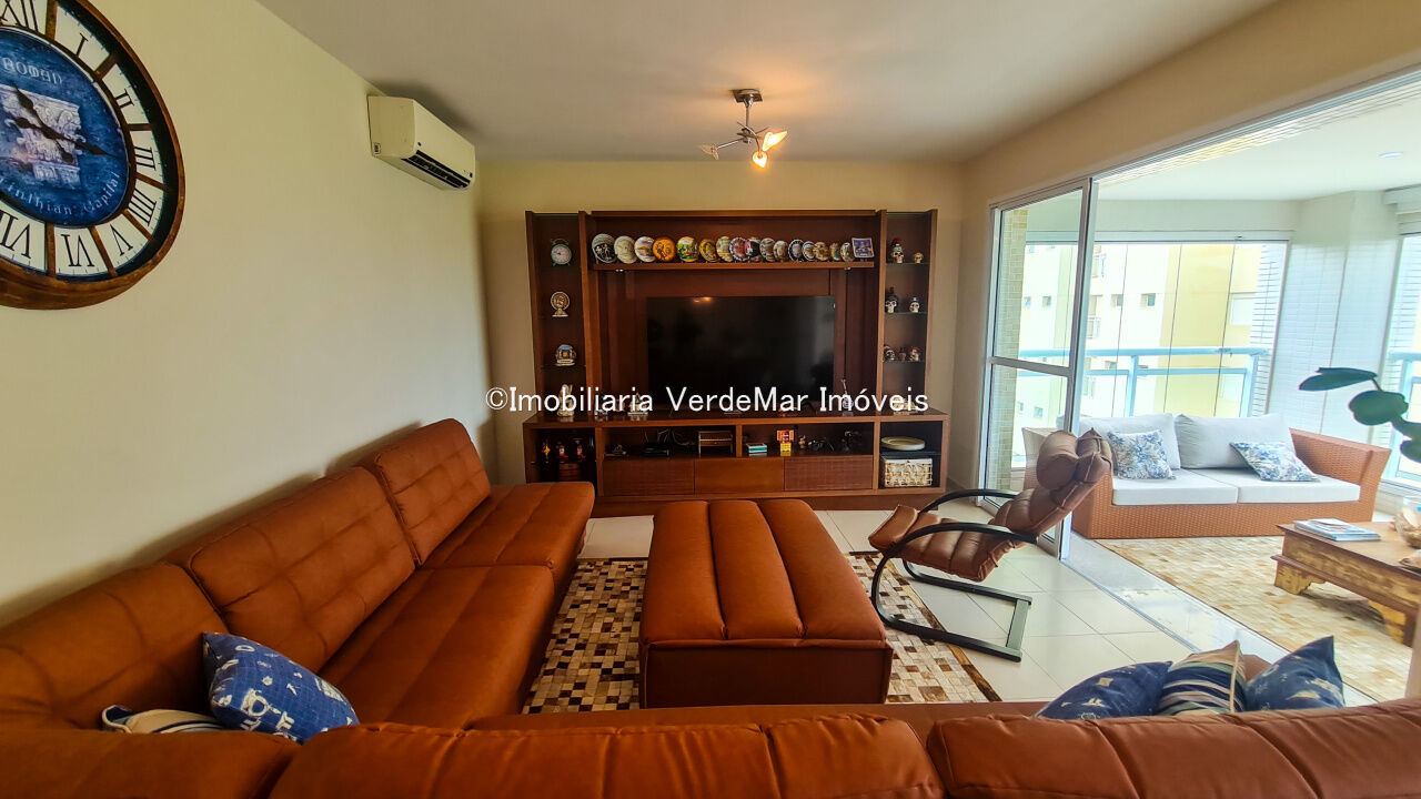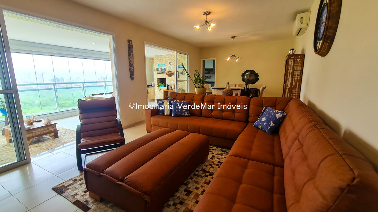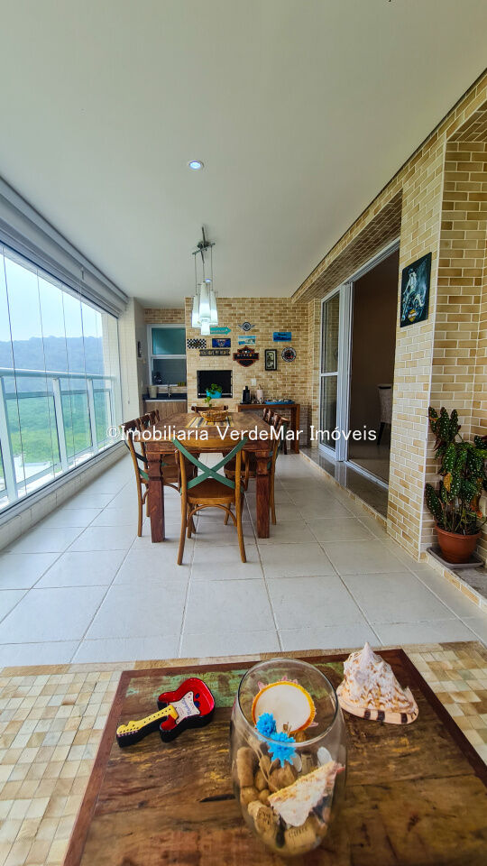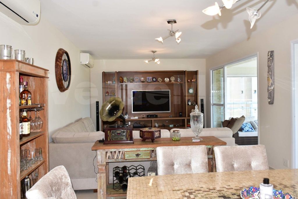 Apartamento a 150 metros da praia da Enseada em Guarujá com vista para o mar, 03 suítes, sala para 02 ambientes, cozinha, lavanderia, dependência de empregada e amplo terraço gourmet com churrasqueira.