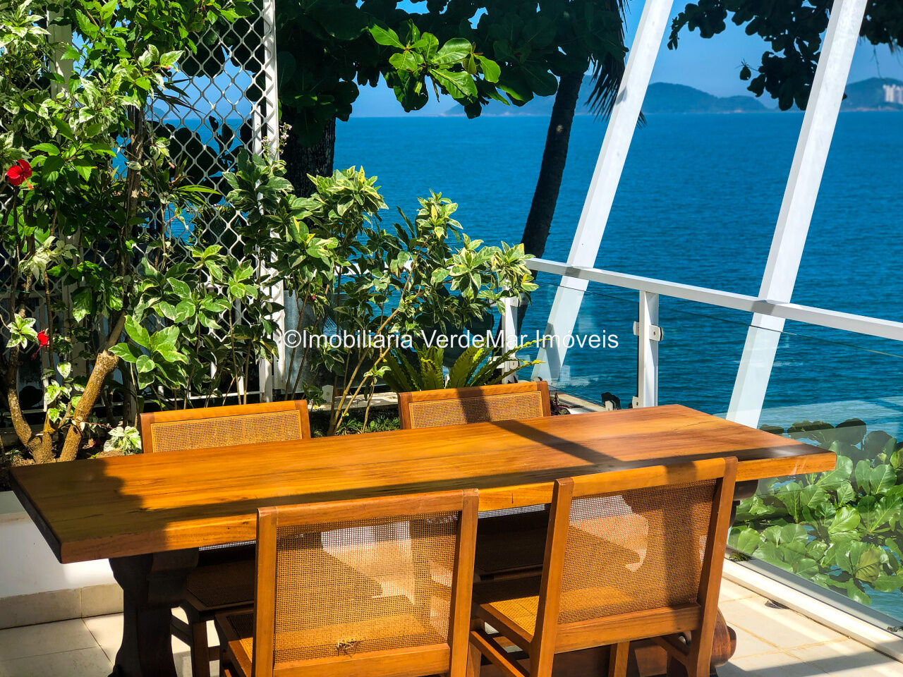 Lazer do clube com jardim, piscina de água salgada, bar, espaço fitness, amplo deck com saída para ao mar e píer.