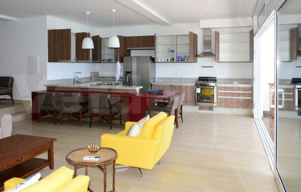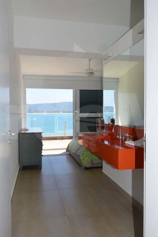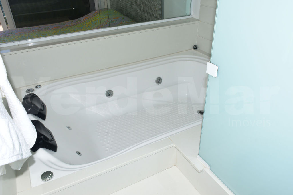 Apartamento frente ao mar no Condomínio Península na Praia da Enseada em Guarujá, com 3 suítes sendo 1 máster com hidromassagem, sala para 2 ambientes com varanda mobiliável, sala de tv, cozinha panejada, lavabo, despensa e área de serviço.